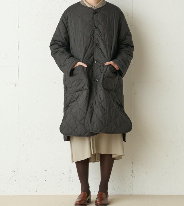 mizuiro ind リブカラーキルティングロングコート 3-270006