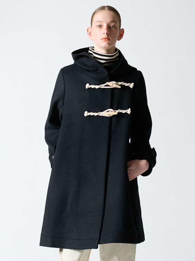 2023AW限定モデルとしてmizuiro ind人気のAラインフード付きコートが新登場。ライトな素材に替え、トグルと留め紐はオールホワイトに。カラーは3色展開で魅力的になってご提案。二重織りスーパー100ウールを使用した暖かさが特徴。トグル位置は上に二か所のみで留めやすく、上品なAラインがスッキリ感を感じられるシルエットです。裏地は付いておりません。毎年長く愛用できるお勧めのコートなので冬の寒さが待ち遠しくなる1枚です。 Point 袖丈:長袖 デザイン:無地 ネック:その他 Detail 裏地:なし 透け感:なし 伸縮性:なし 光沢感:なし ポケット:サイド color black size F 着丈91cm バスト108cm 肩幅37.5cm アームホール60cm 袖丈58cm 袖口13.5cm 裾周り136cm 素材 ウール80% ナイロン20% 洗濯表示 ドライ 原産国 日本製
