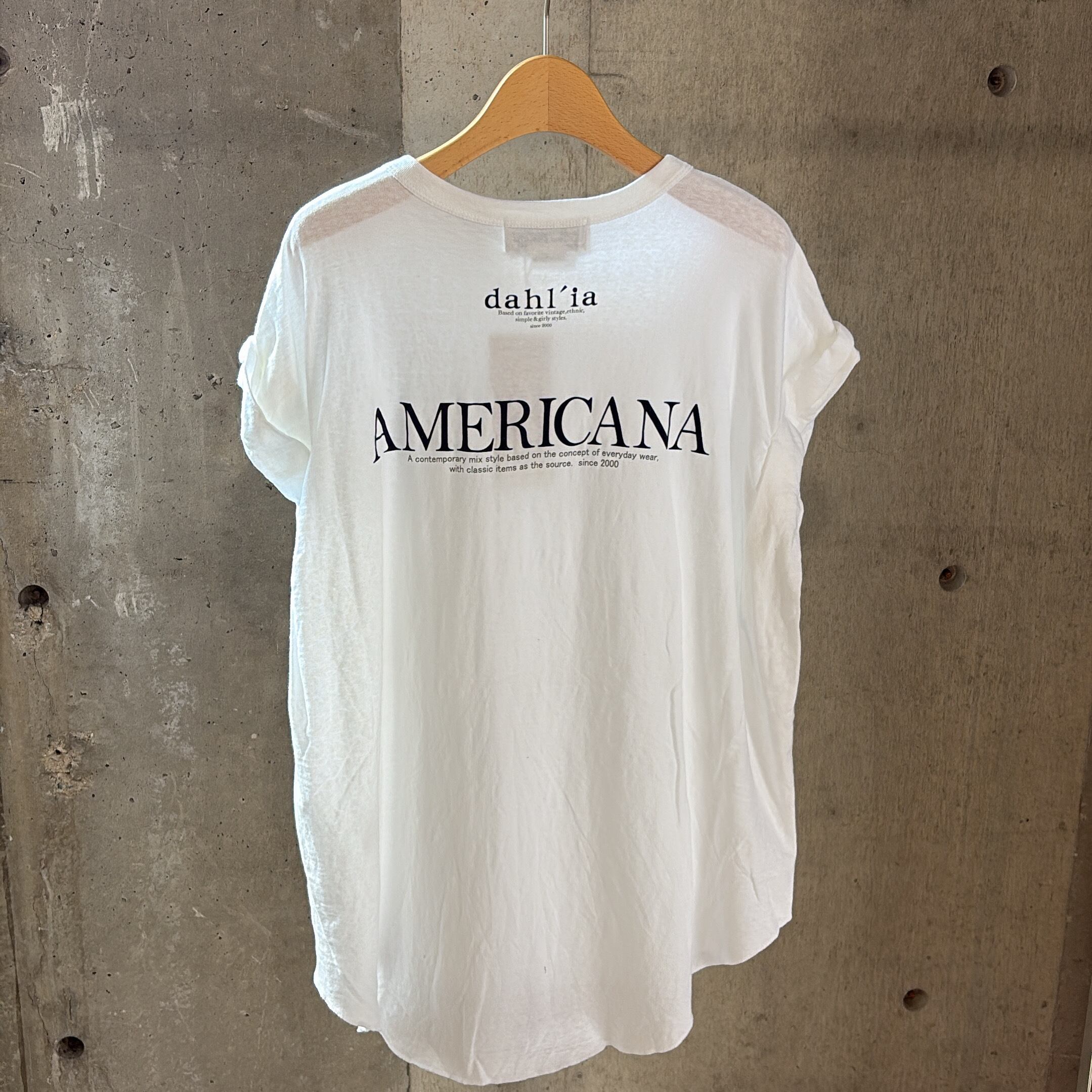 dahl'iaで人気のリメイクトップスをベースにAMERICANAらしさのあるカジュアルなプリントがほどこされたデザイントップス。