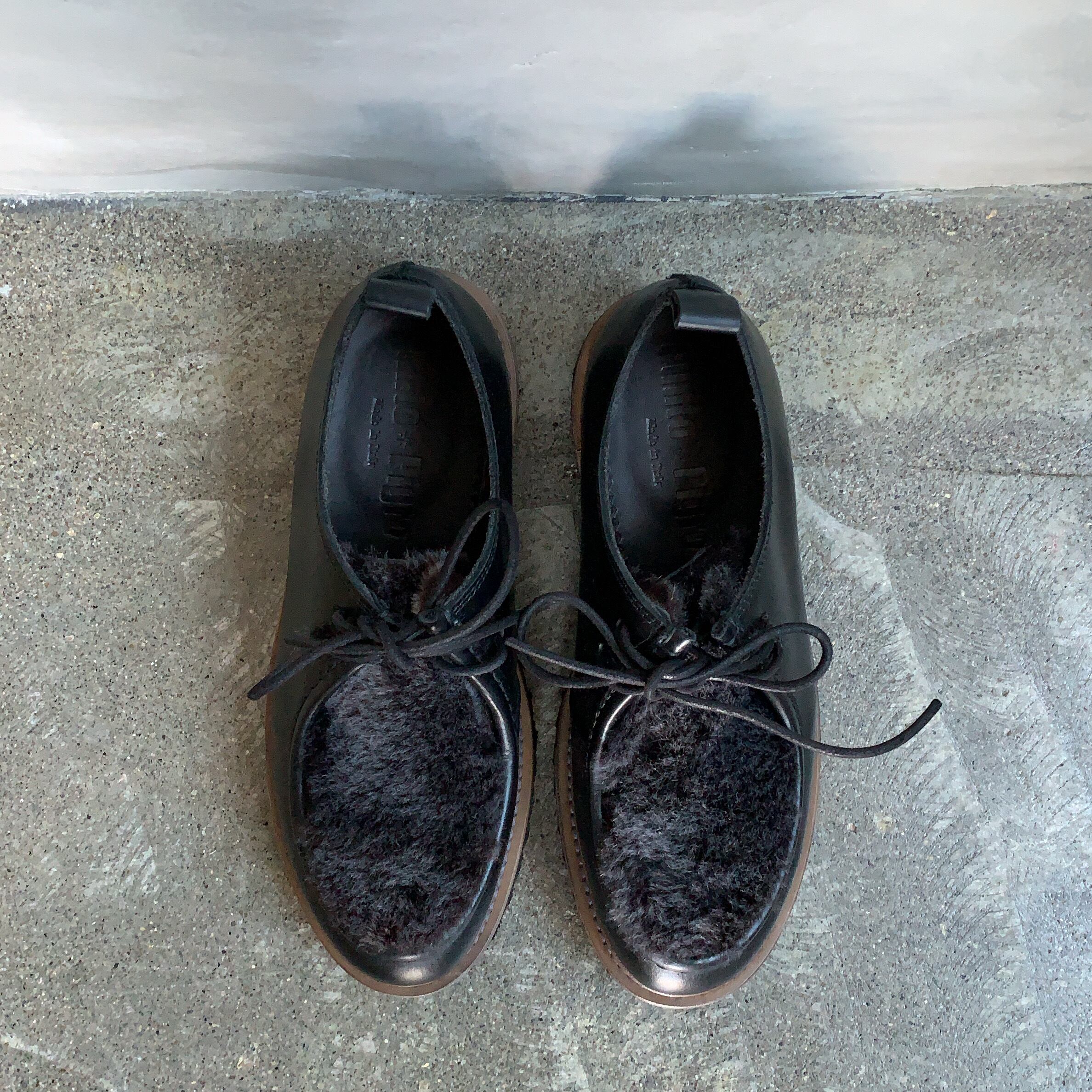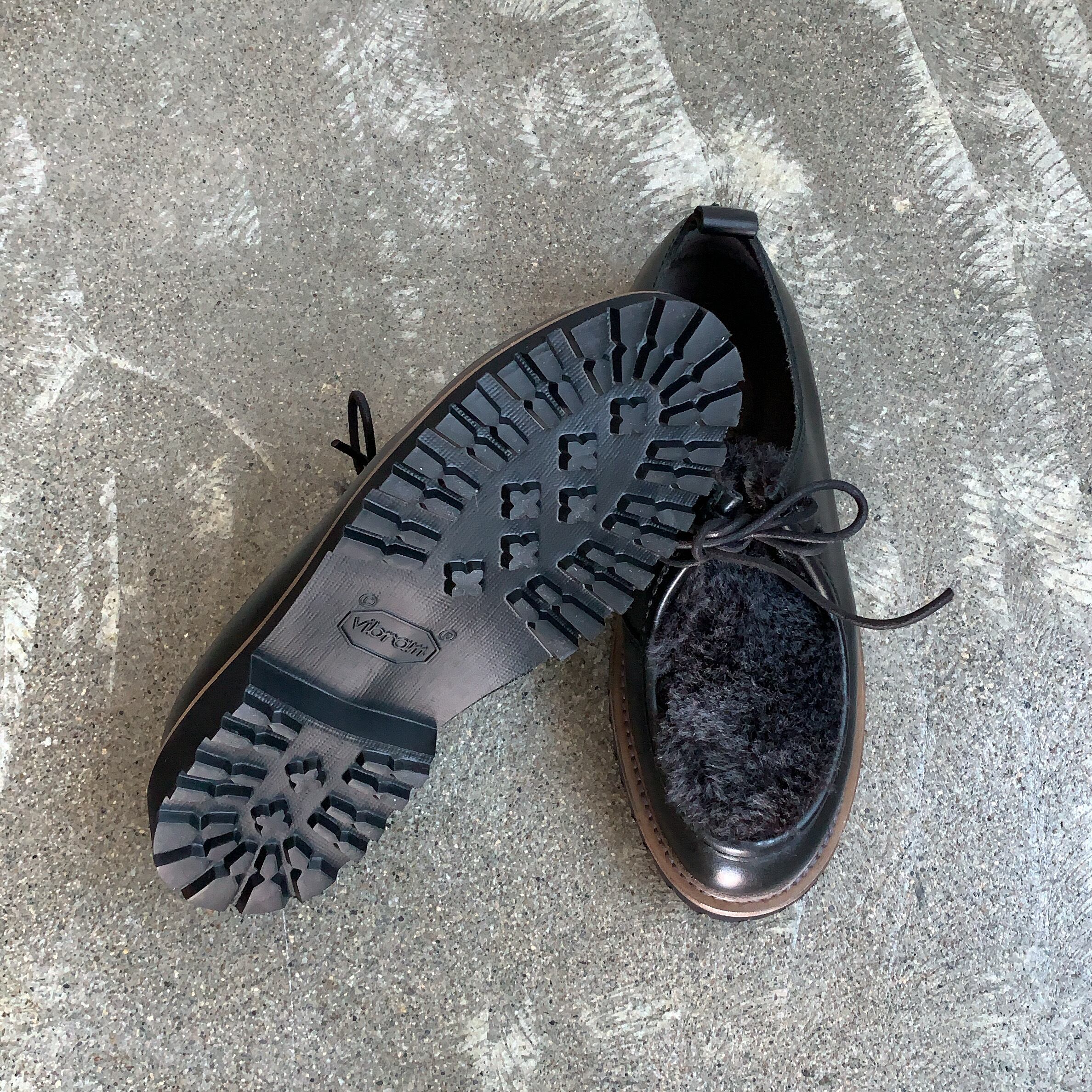 甲部分にファーを使用、秋冬らしい温かみのある雰囲気です。アッパーには光沢感が上品なレザーを使用しております。
