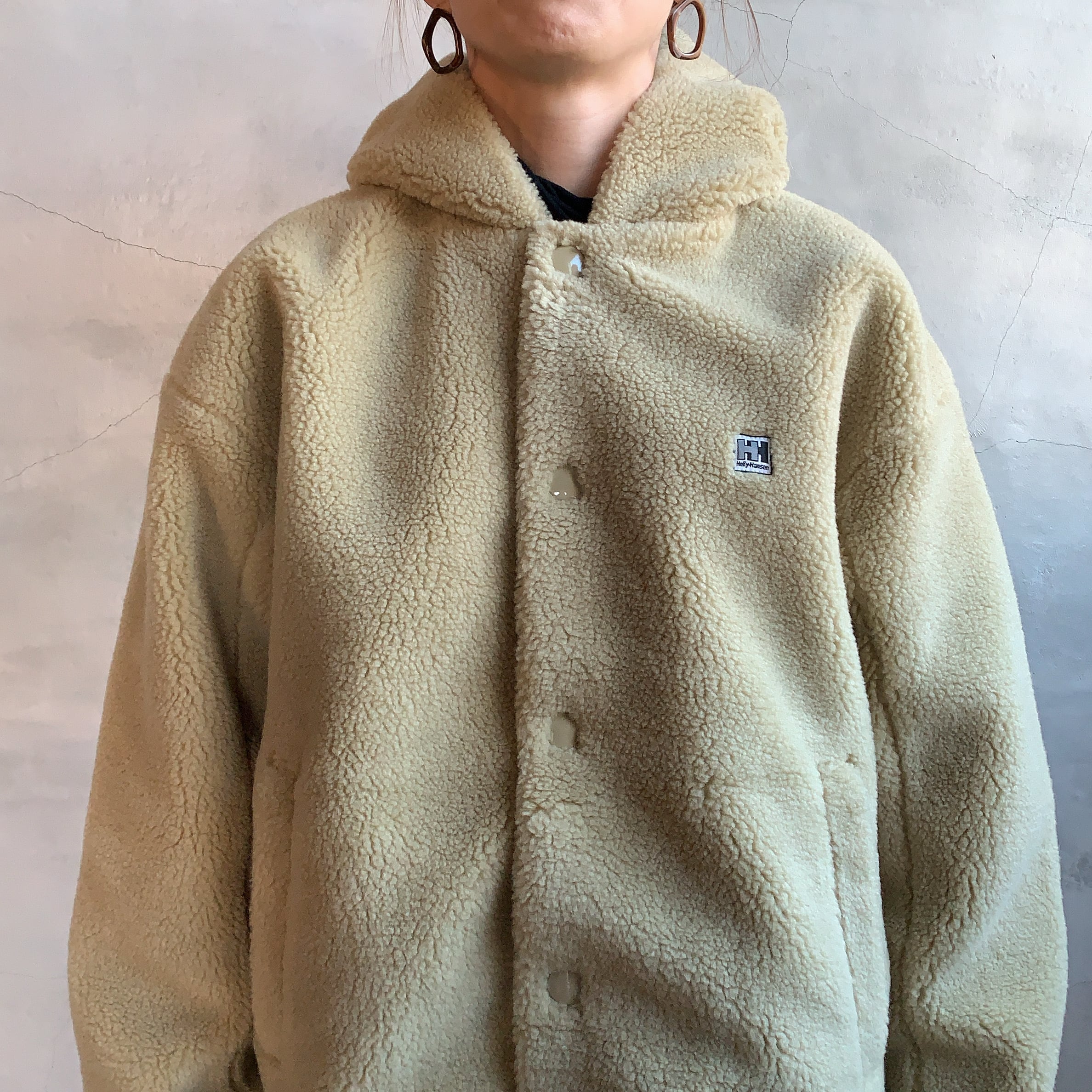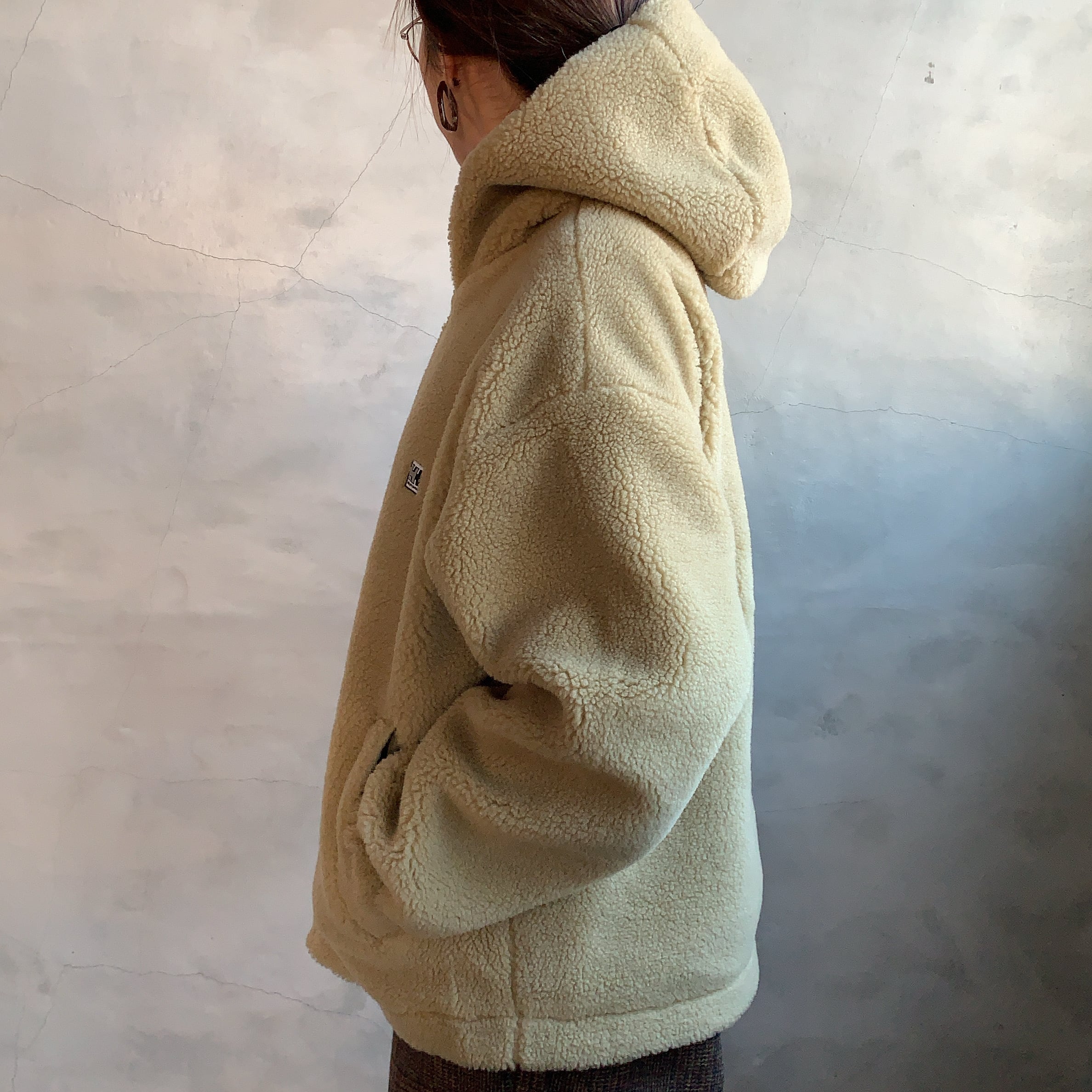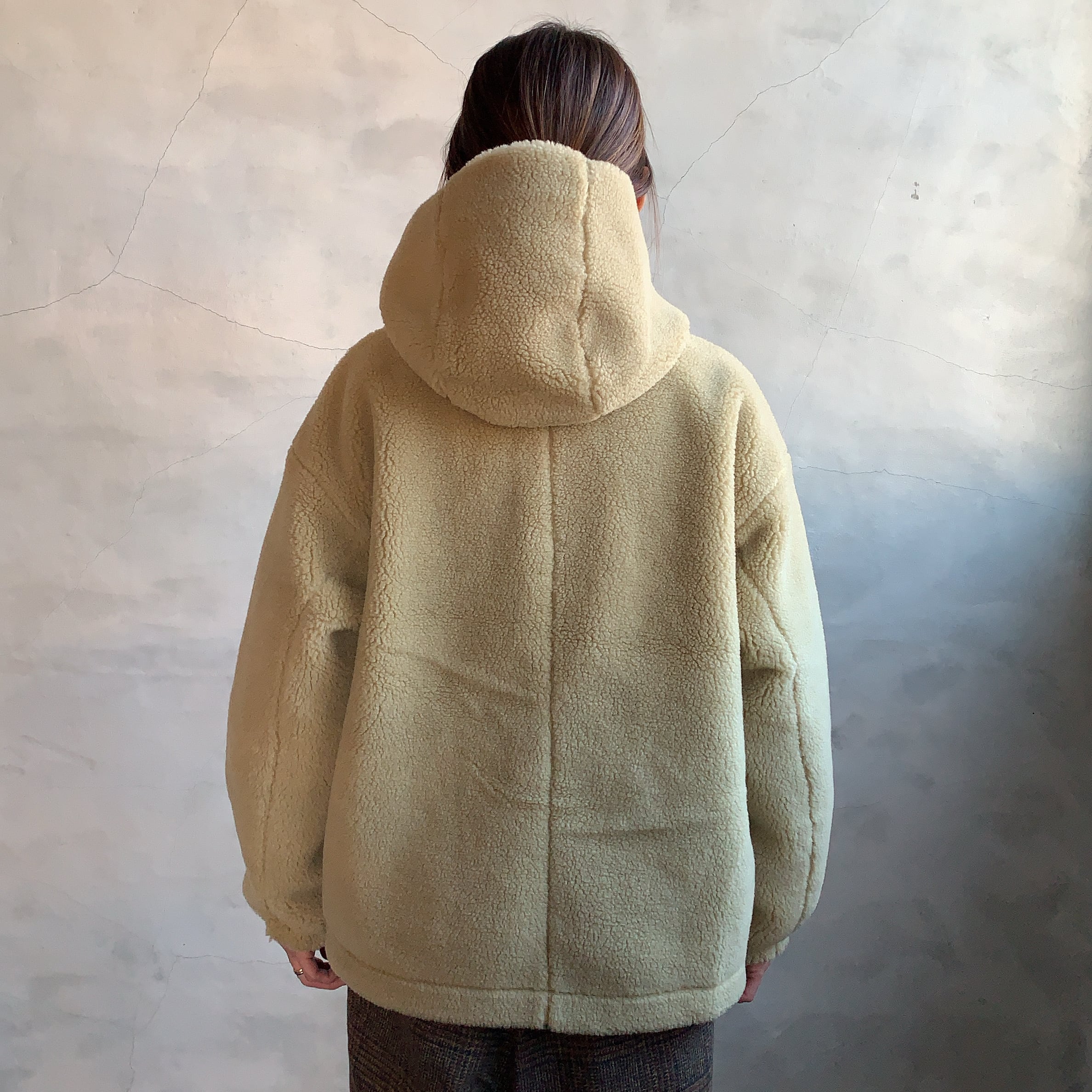 ボア感のあるクラシカルな風合いが特徴で、保温力に優れています。アウターに使いやすいフーディタイプのコーチジャケットは、防風性のある裏地付きに。