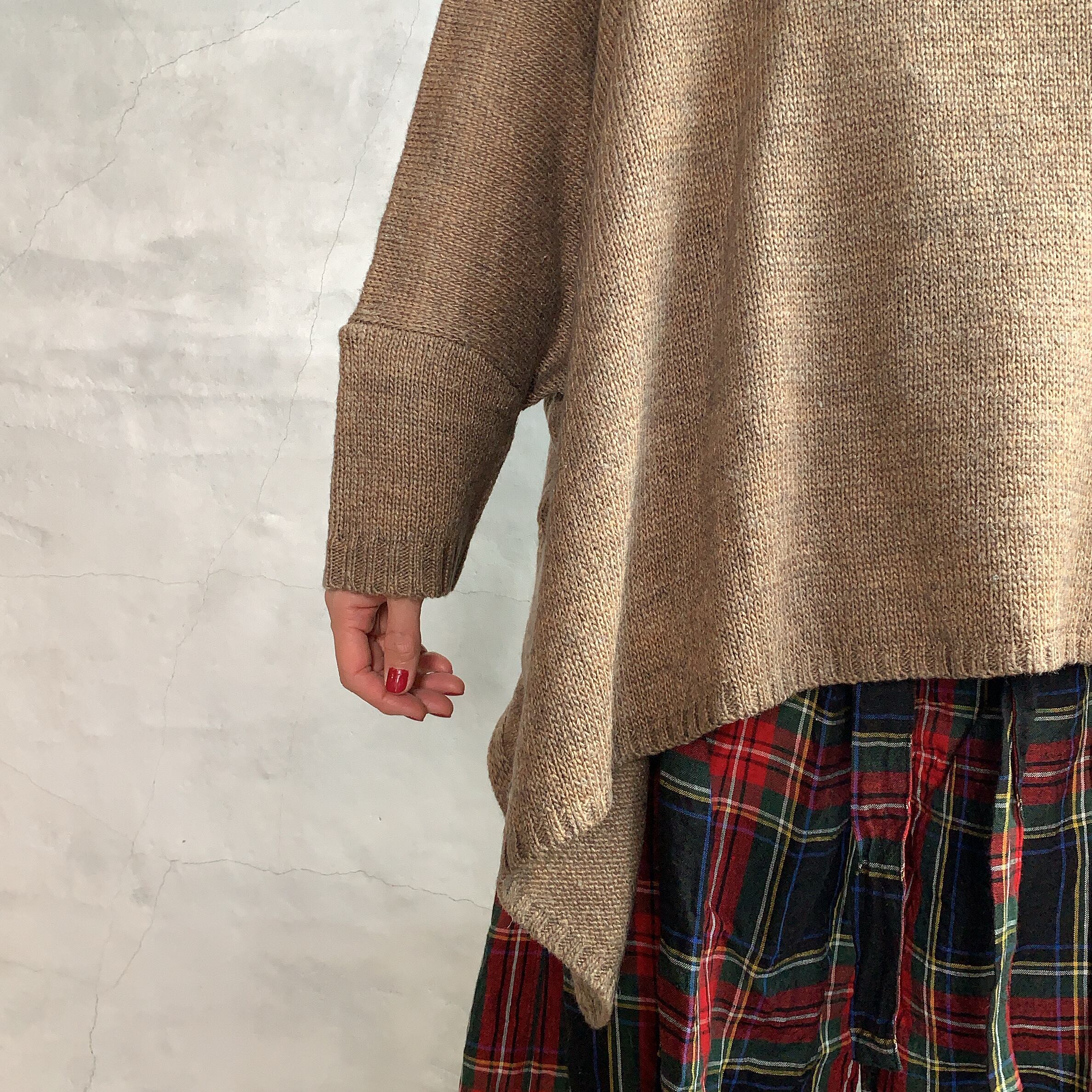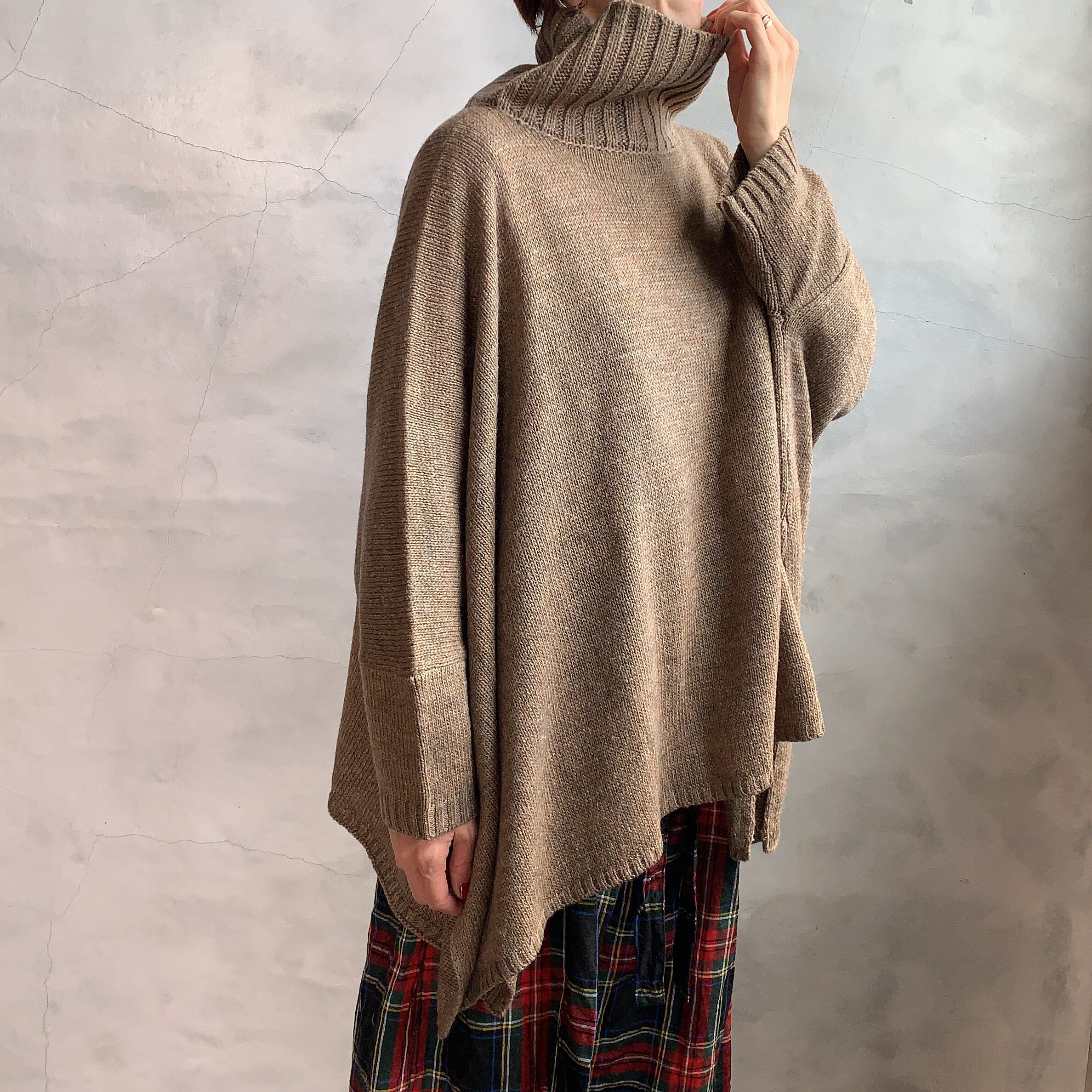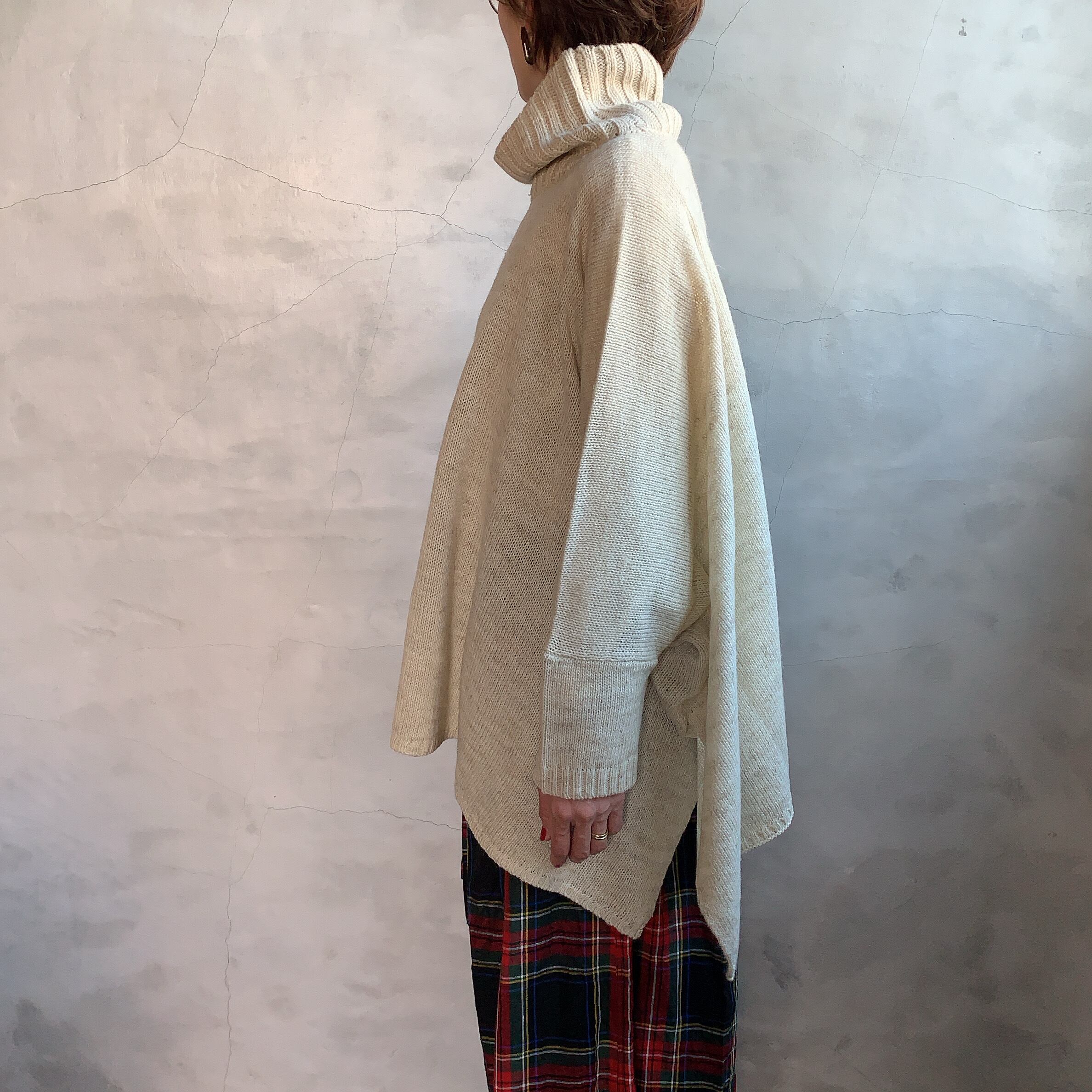 ポンチョのようなワイドシルエットのニットプルオーバー。