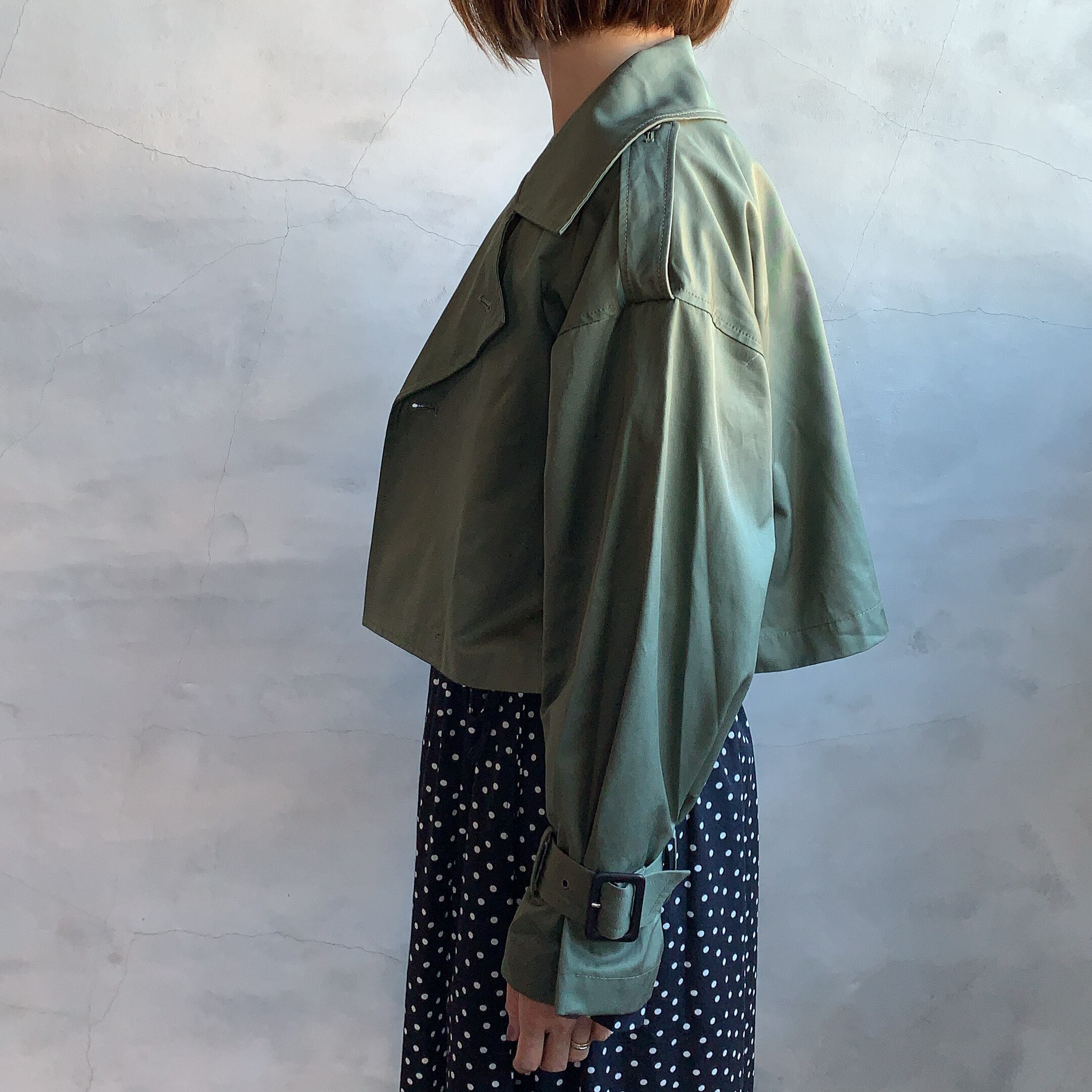 ショート丈のジャケットはボレロ感覚で+プラスできる1枚。着丈と袖の長さのバランスがアクセントになったジャケット、ワンピースとのレイヤードスタイルがおすすめです。またボリューム感あるスカートや太めのボトムともバランスよく着れます。サロペットやオーバーオールに重ねてもかっこいいです。リラックス感あるシルエットと太めのアームまわりのジャケットは、様々なアイテムとのレイヤードスタイルにも重宝します。