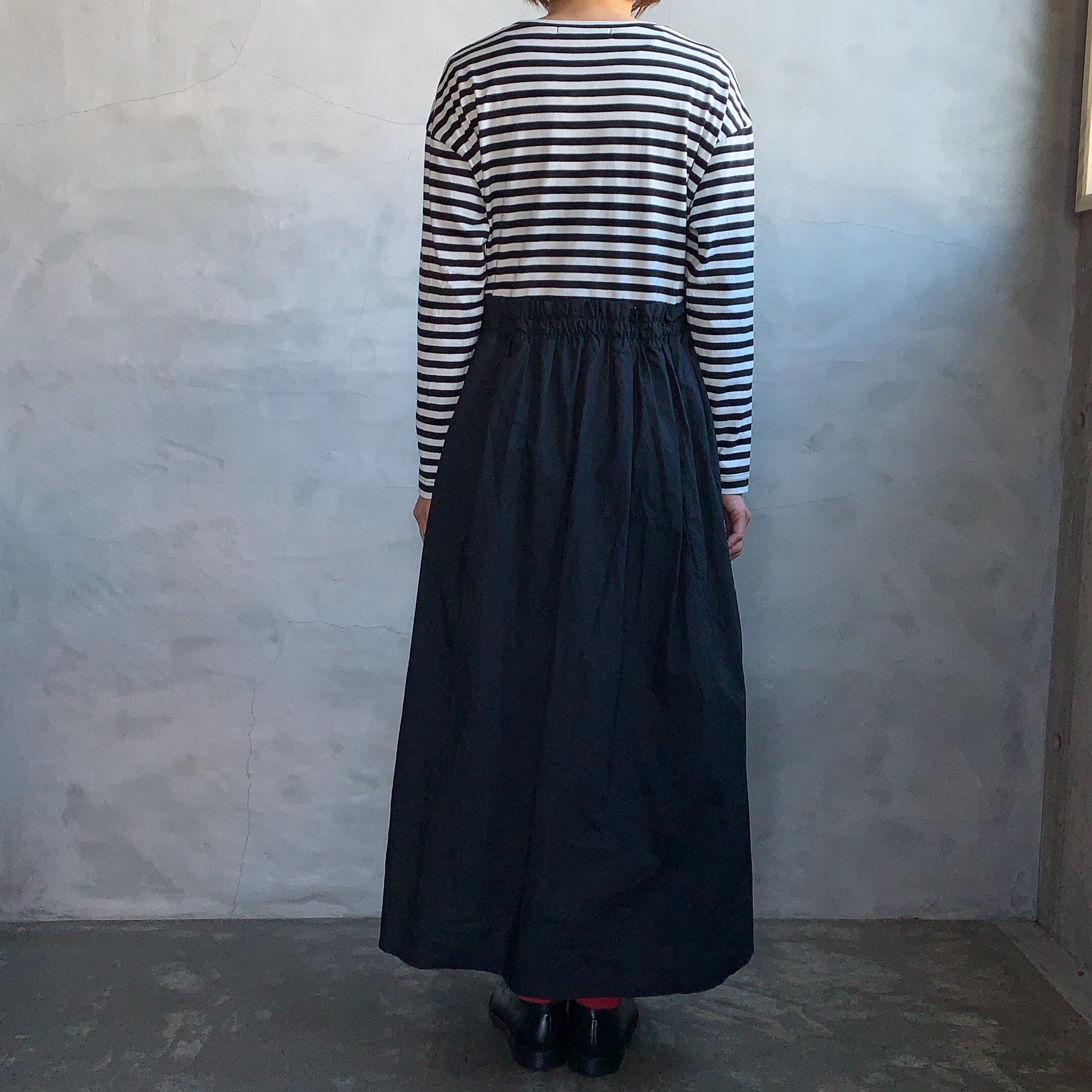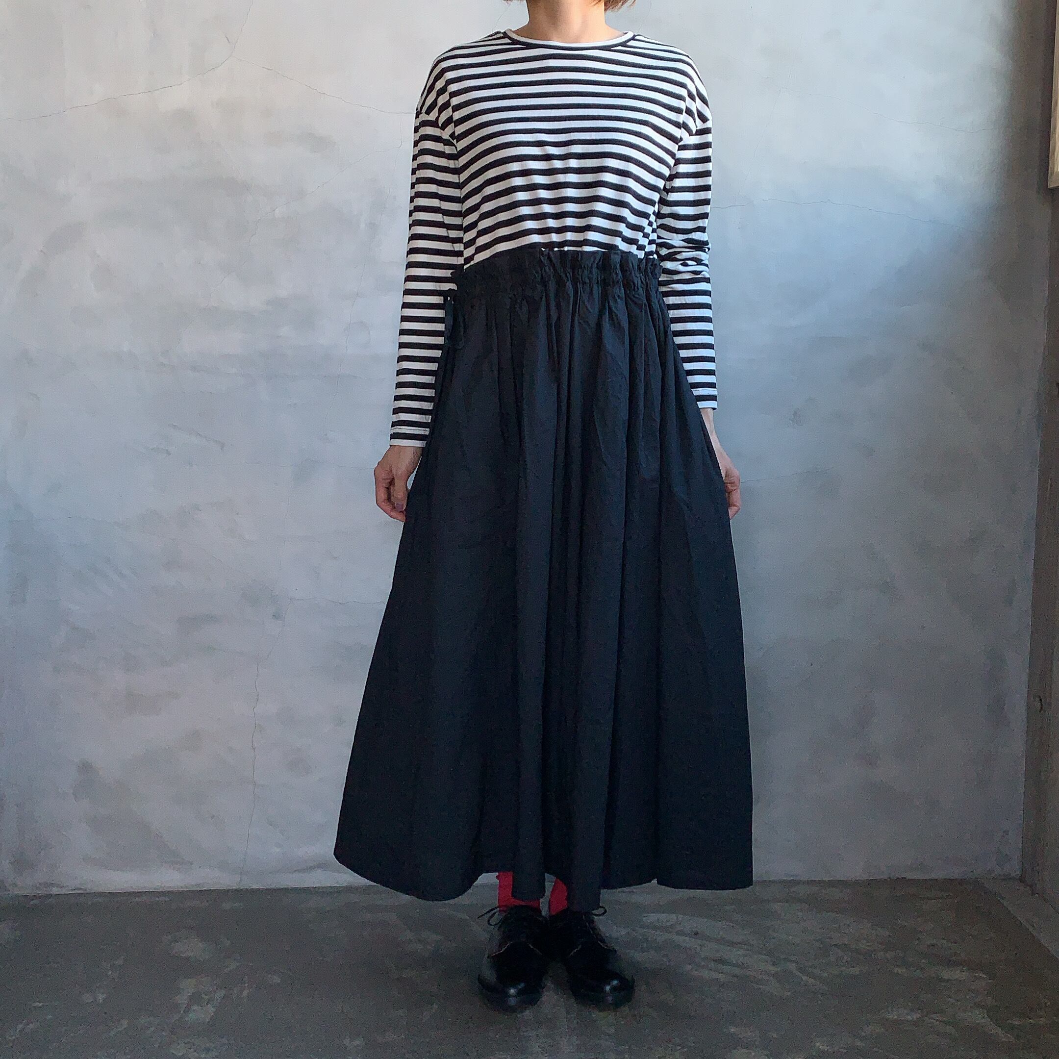 カットソーと布帛の異素材MIXを楽しめるコンビワンピース。