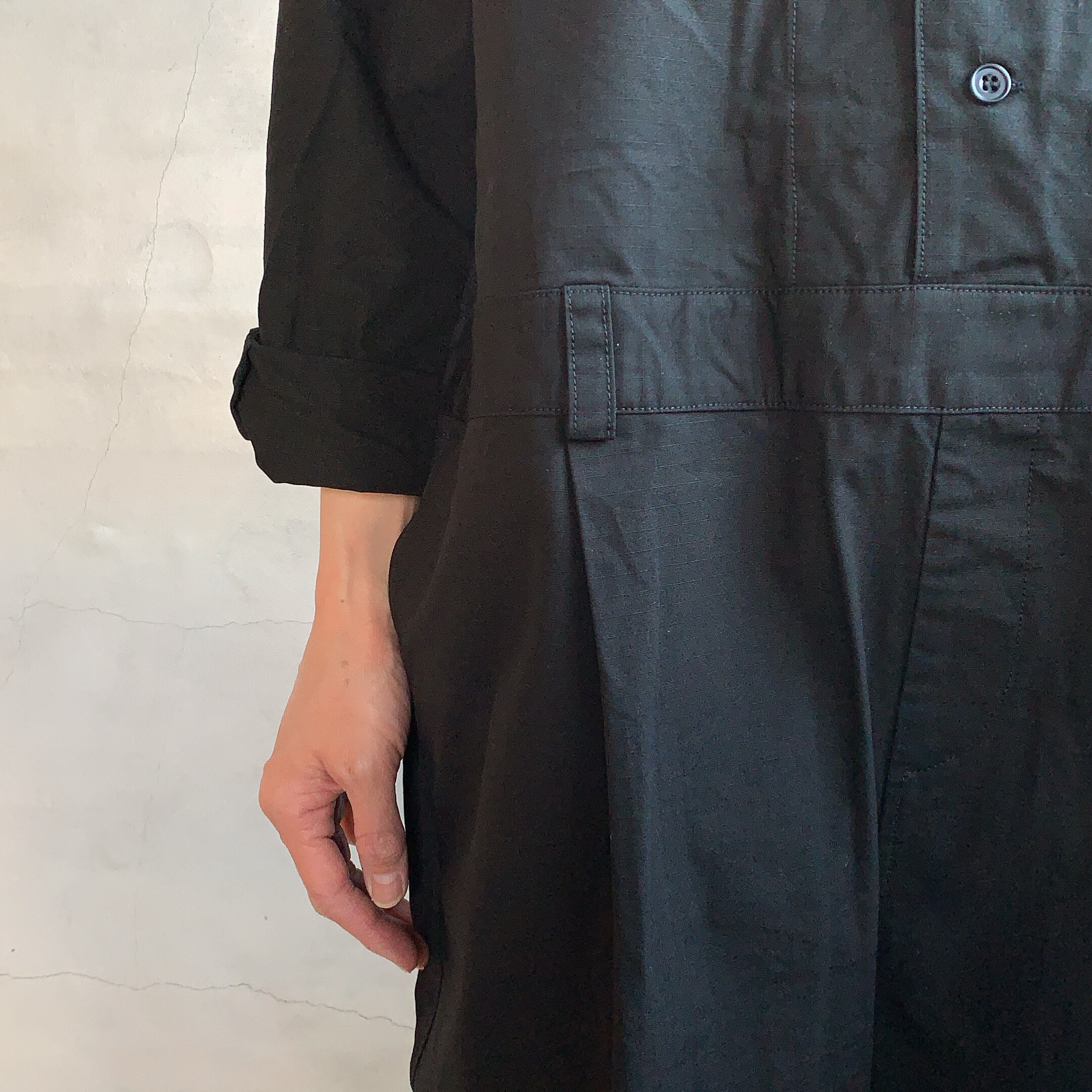 ハリのあるリップストップ生地を使用したジャンプスーツ。