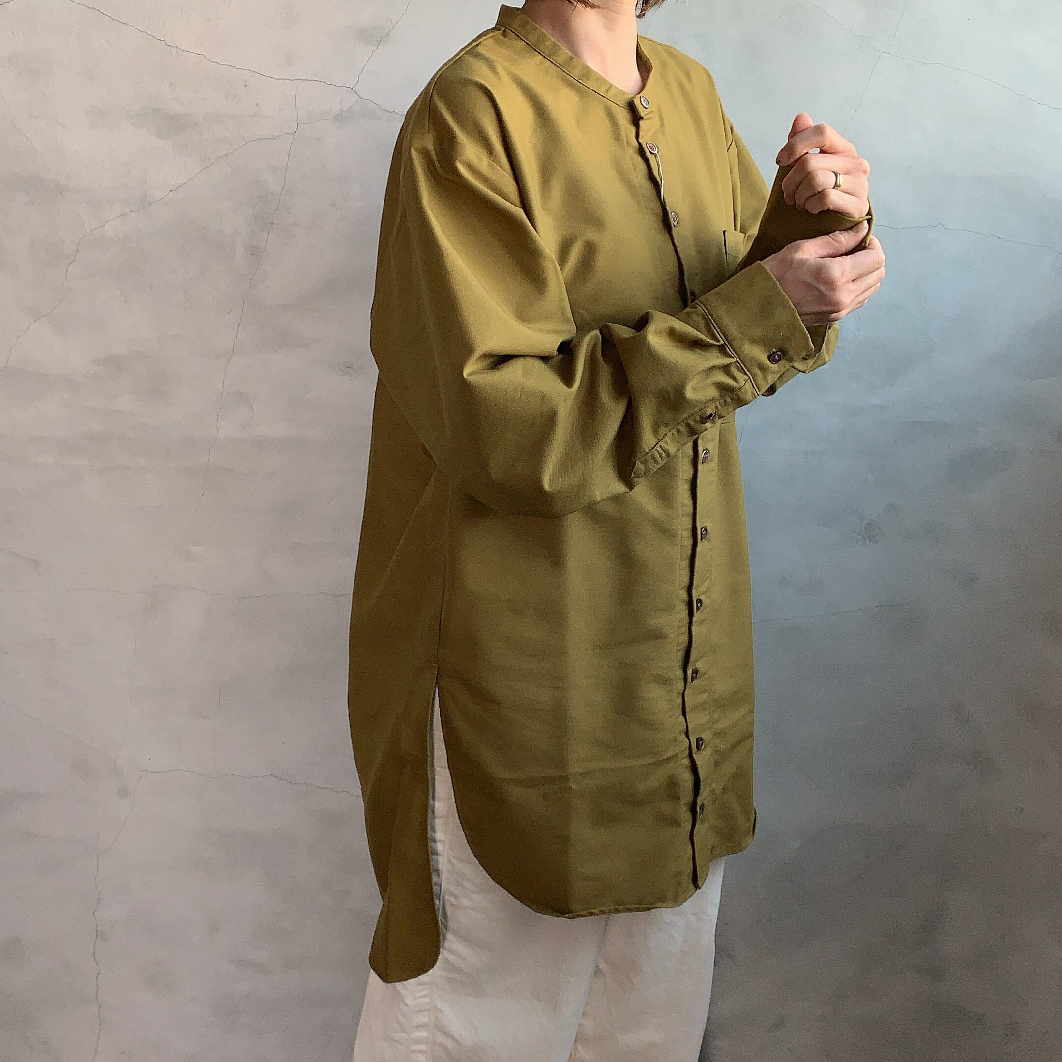 HARVESTY COOLMAX BAND COLLAR LONG SHIRT