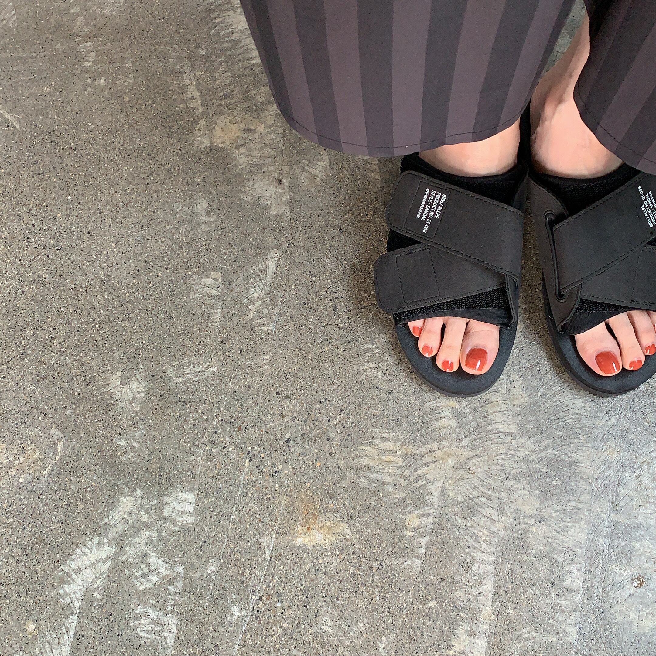 履く人に合わせた一でベルトを固定できる簡潔な構造のサンダルタイプ。