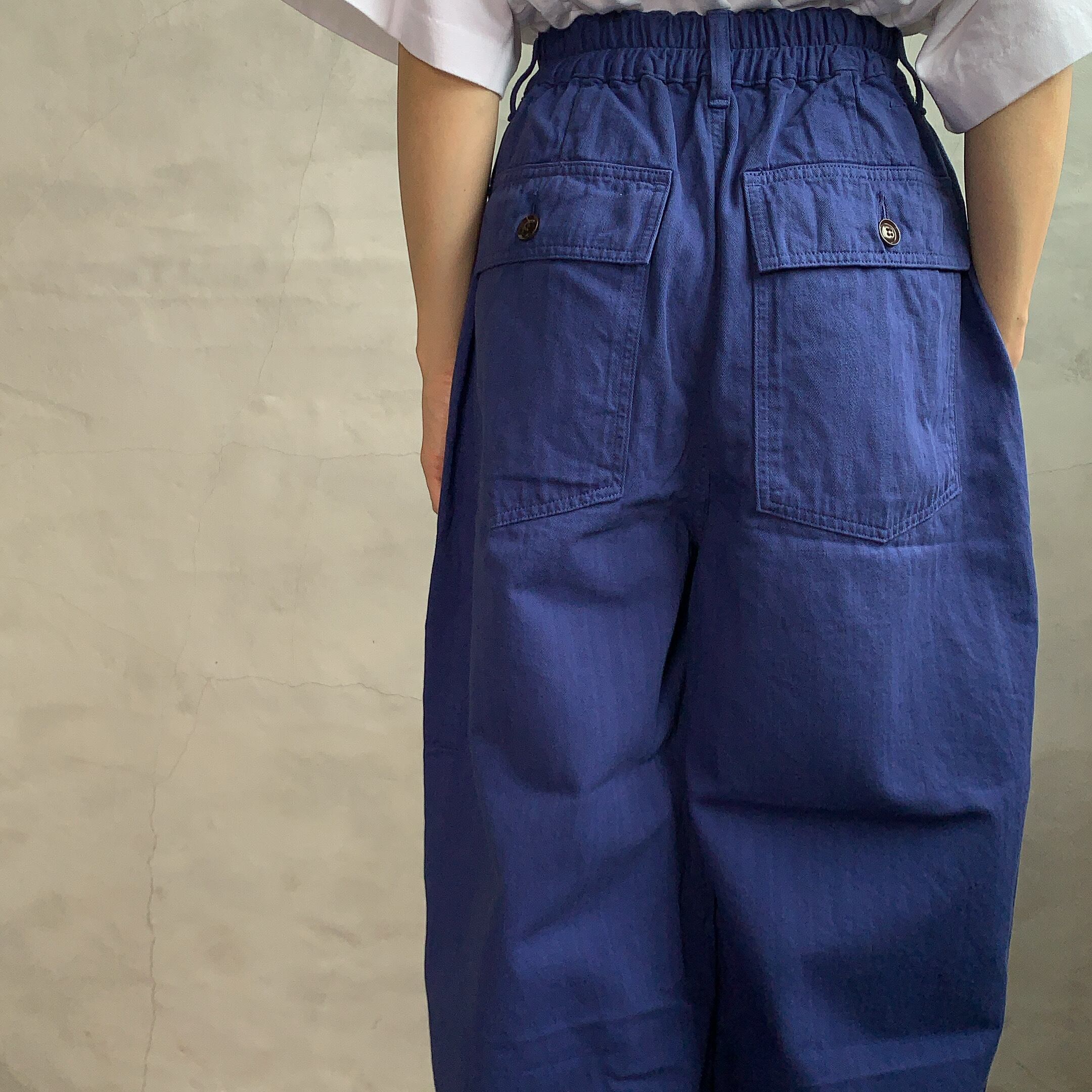 ワイドシルエットですが、<サーカスパンツ>の形よりもスッキリしたシルエットです。