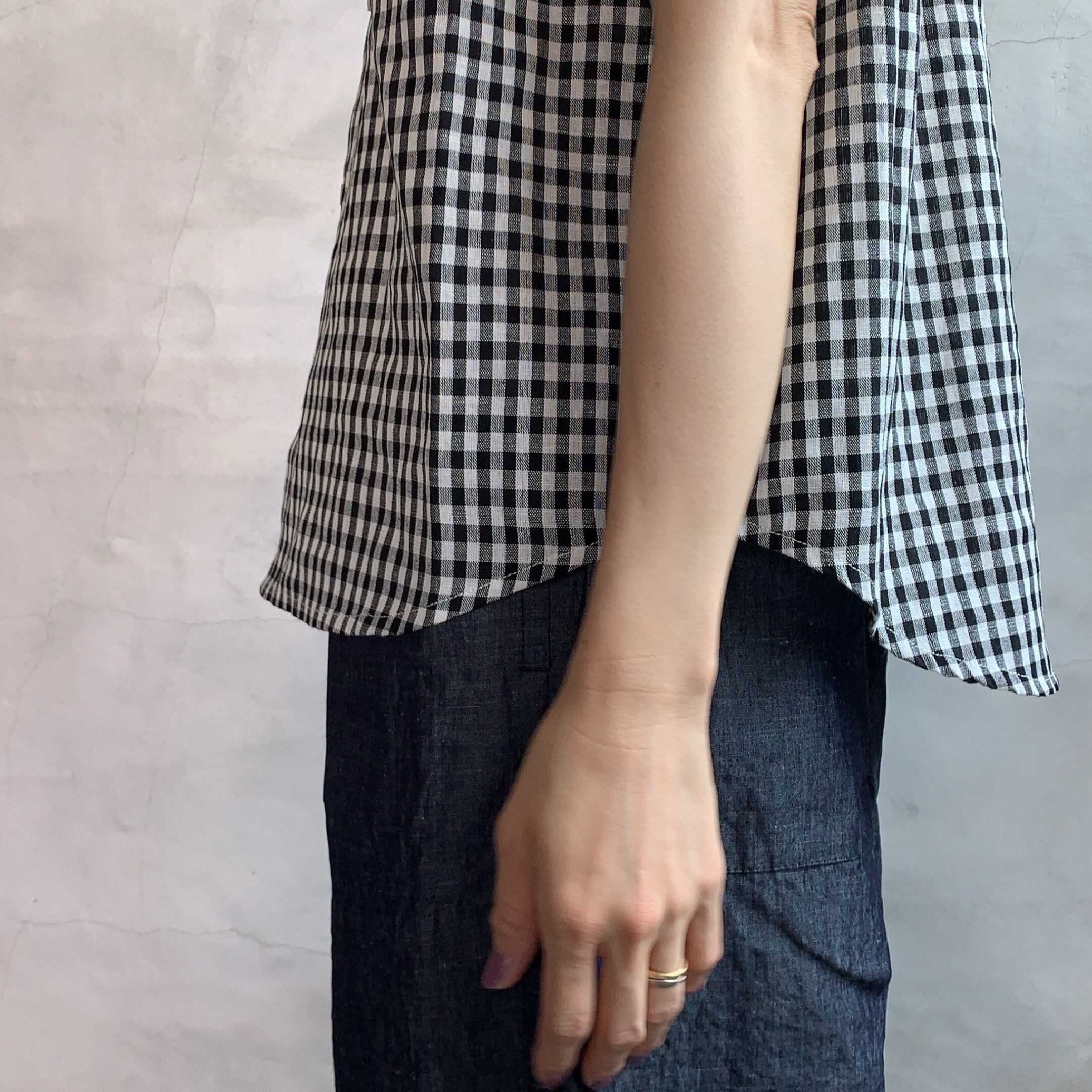 ichi イチ ギンガムチェック半袖シャツブラウス