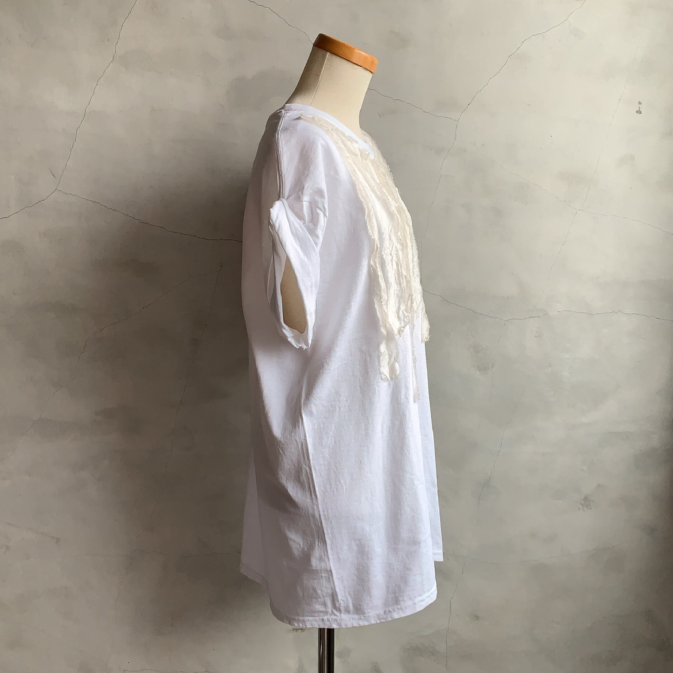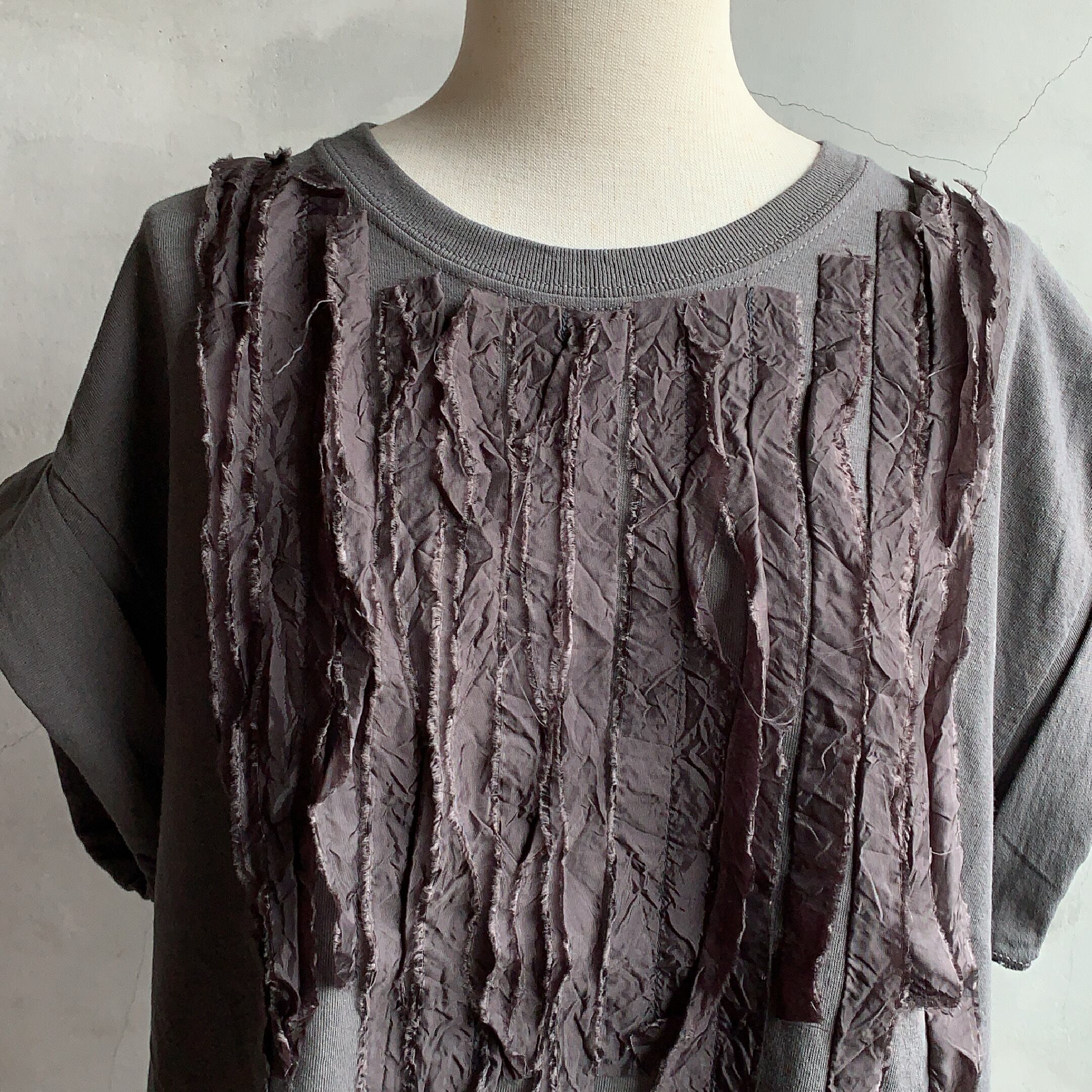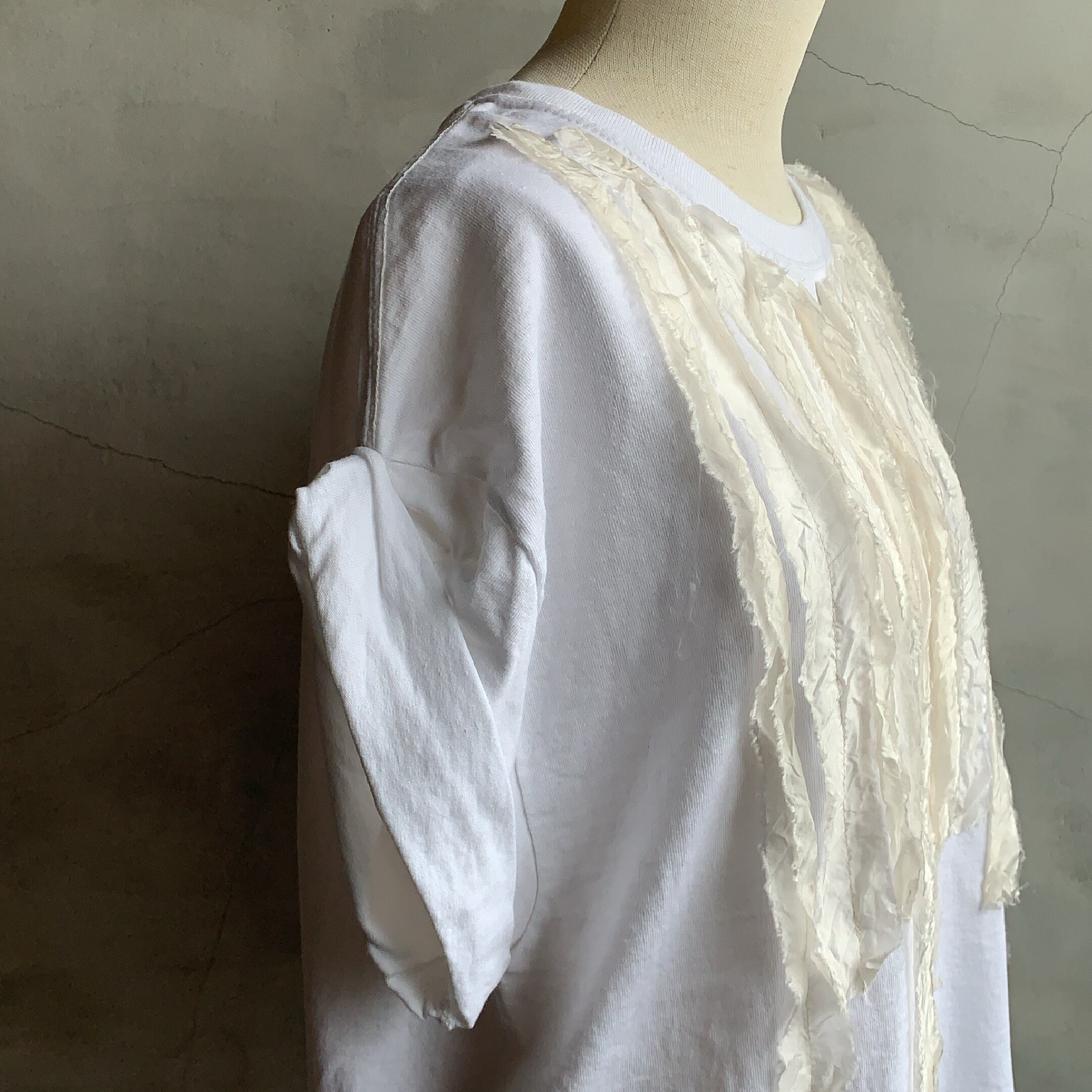 アメリカで有名なGILDANのコットンカットソー生地にキュプラ素材のリボンをプラスしたリメイクTEE。