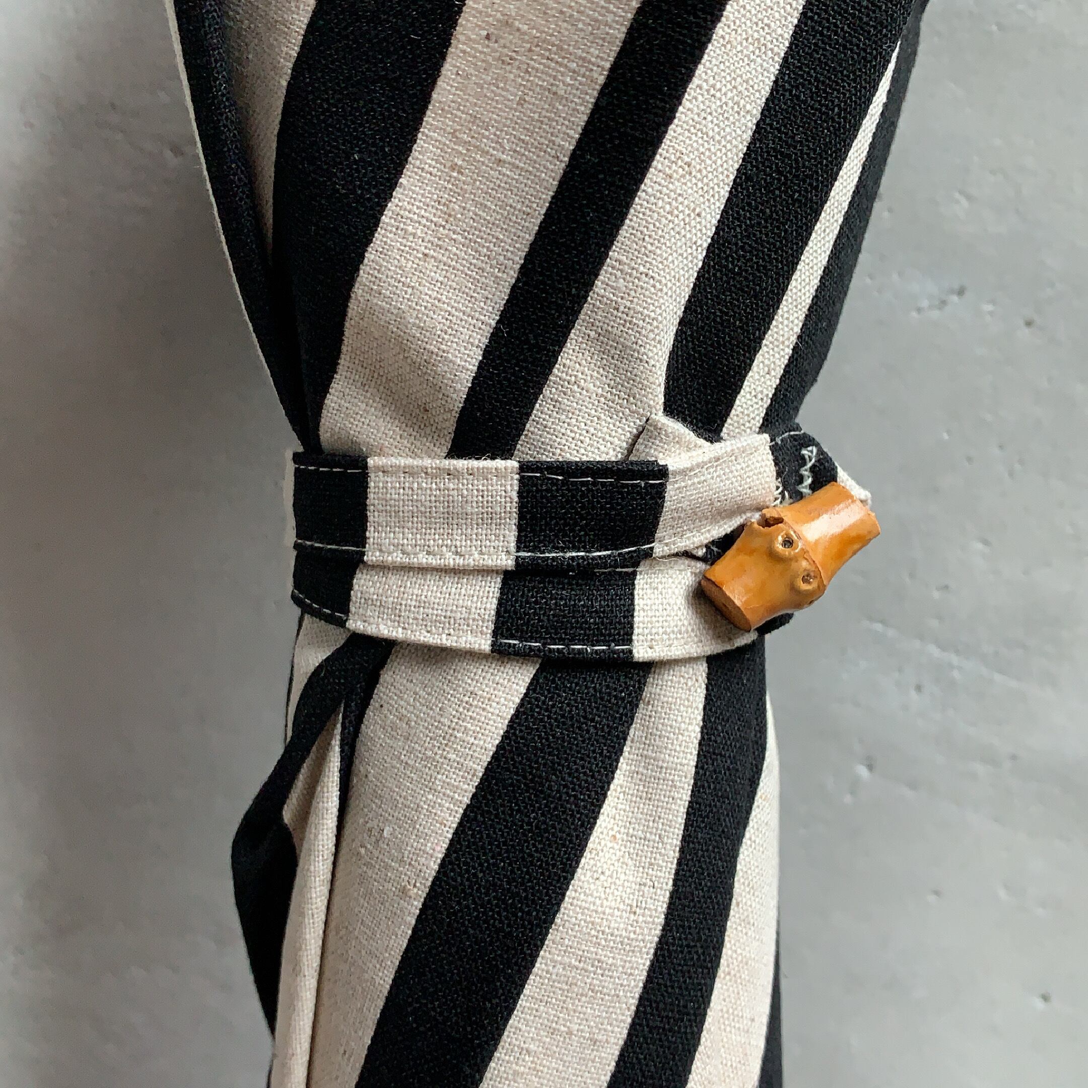 持ち手や留め具、石突き部分に天然竹をあしらってアクセントに。