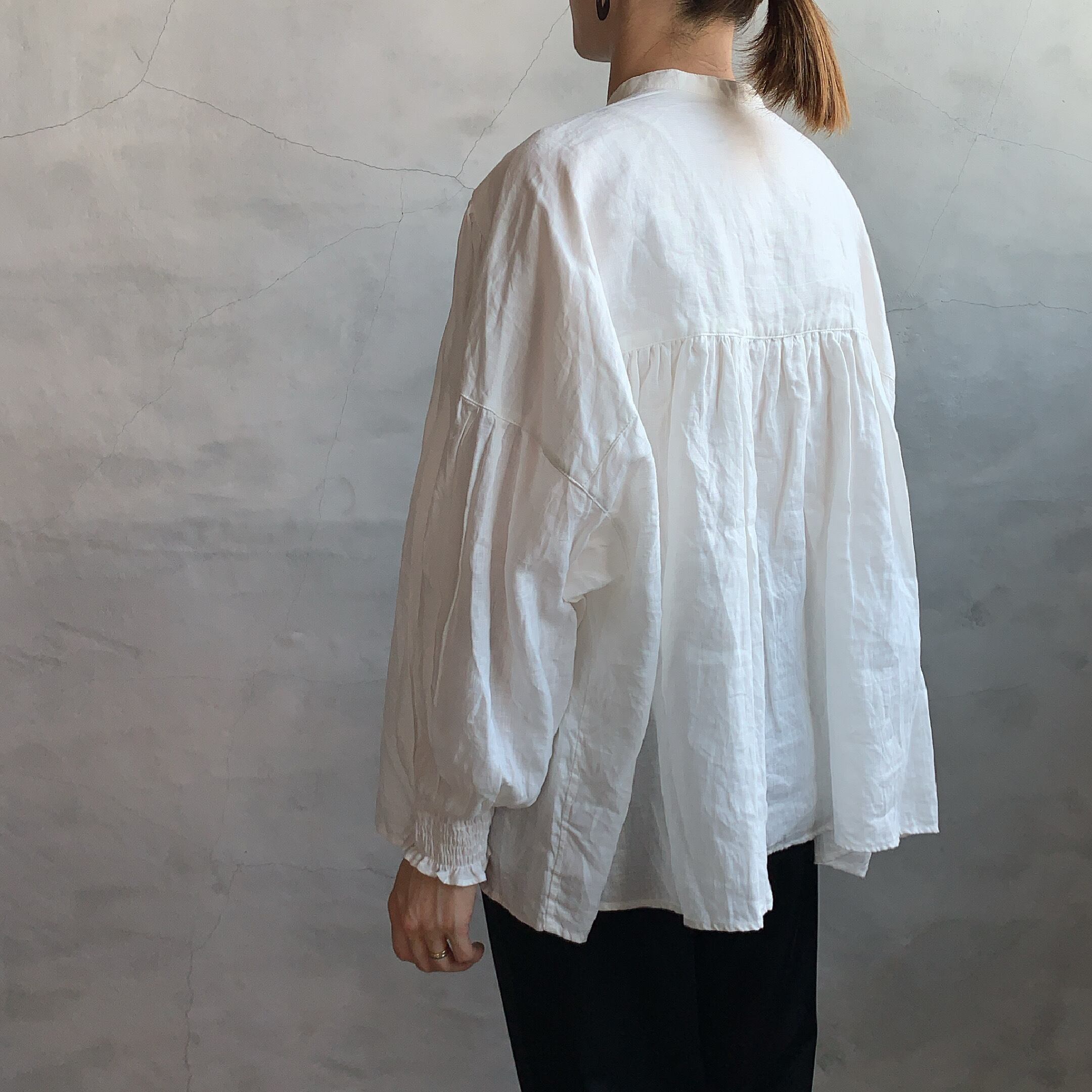 UNIVERSAL TISSUよりリネン100%素材のバンドカラーブラウスのご紹介です。