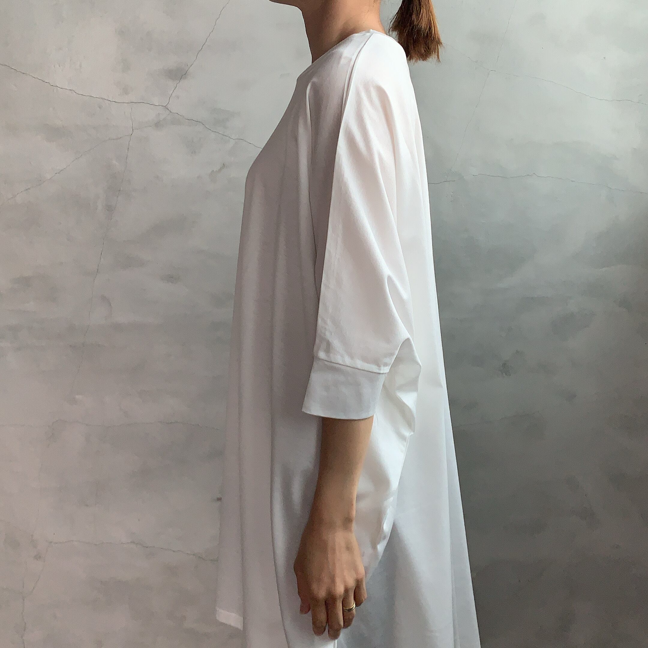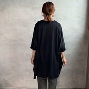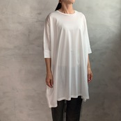 mizuiro indの夏の定番でもある、クルーネックワイドチュニック。昨年に引き続き長く愛されるアイテムで、シンプルな大人のチュニックです。全体的にワイドなシルエットながら、細めの袖口でメリハリが付いたデザイン。カジュアルすぎずきれい目に着こなせる人気のアイテムで、2枚仕立ての袖が特長。軽さがあり涼しくパンツとコーディネートして気軽にお洒落を楽しめます。フロント部分をタックインしても素敵です。お値段も魅力的なので、色違いでお勧めできるチュニックです。