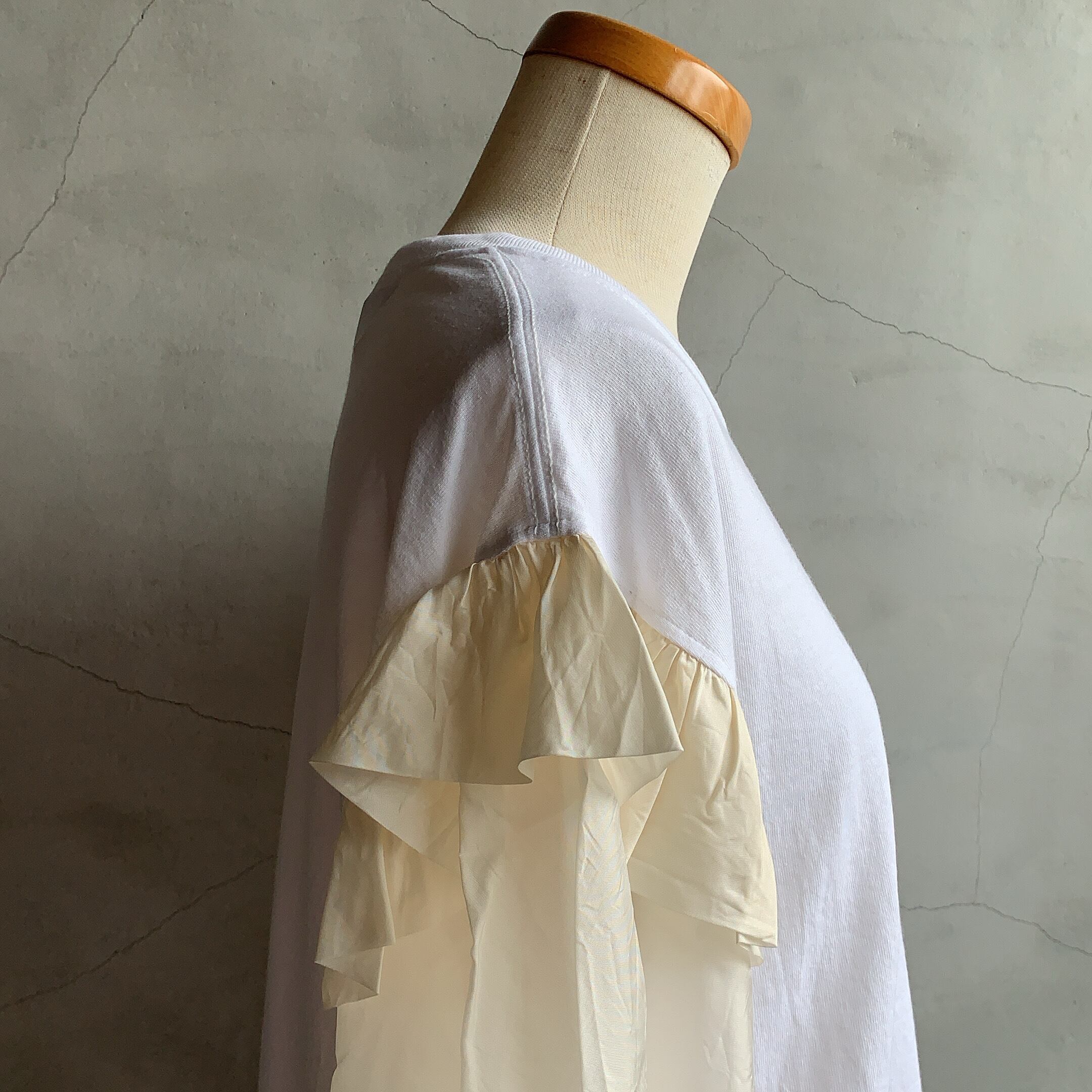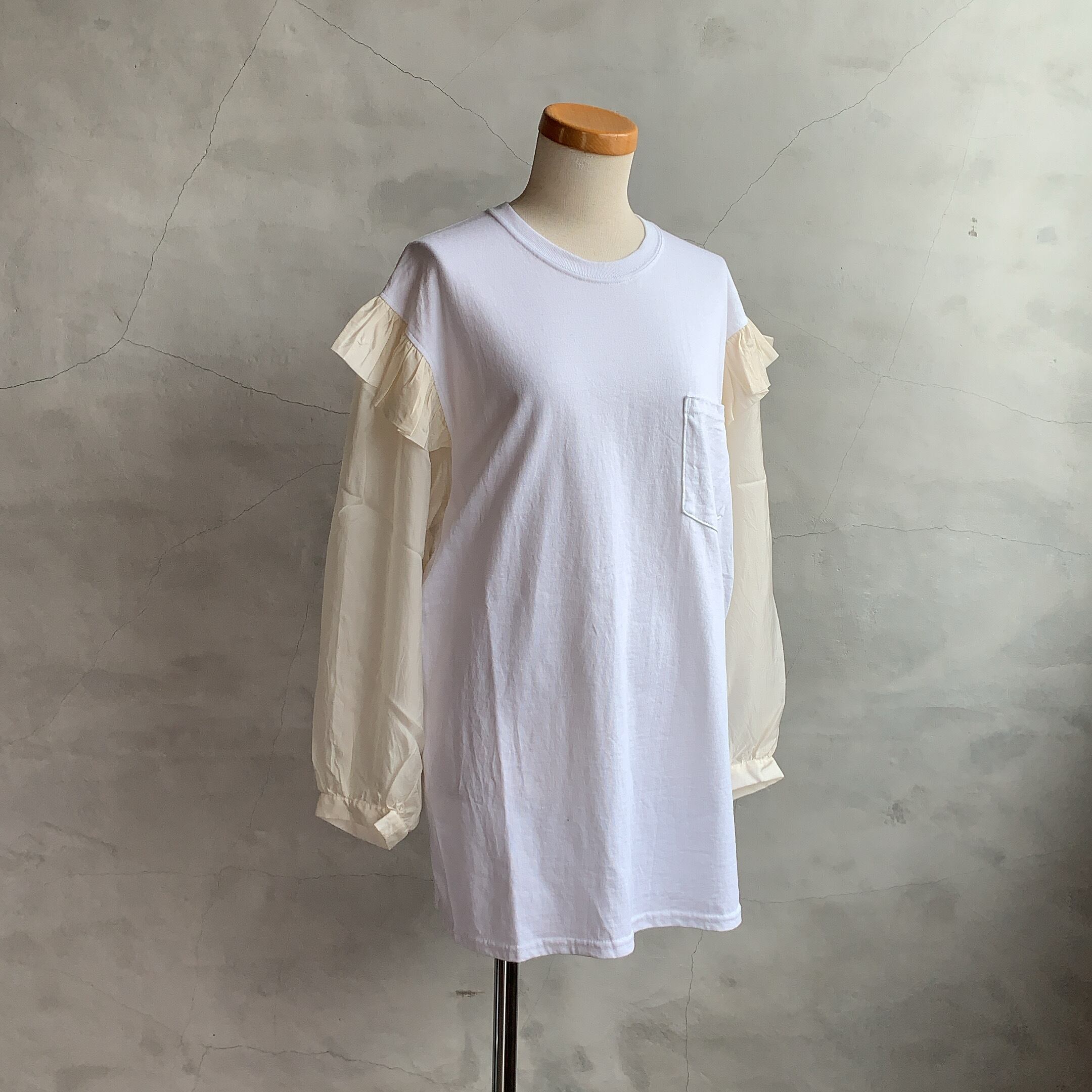 dahl'iaよりシースルースリーブとカジュアルなカットソーのリメイクTシャツ。
