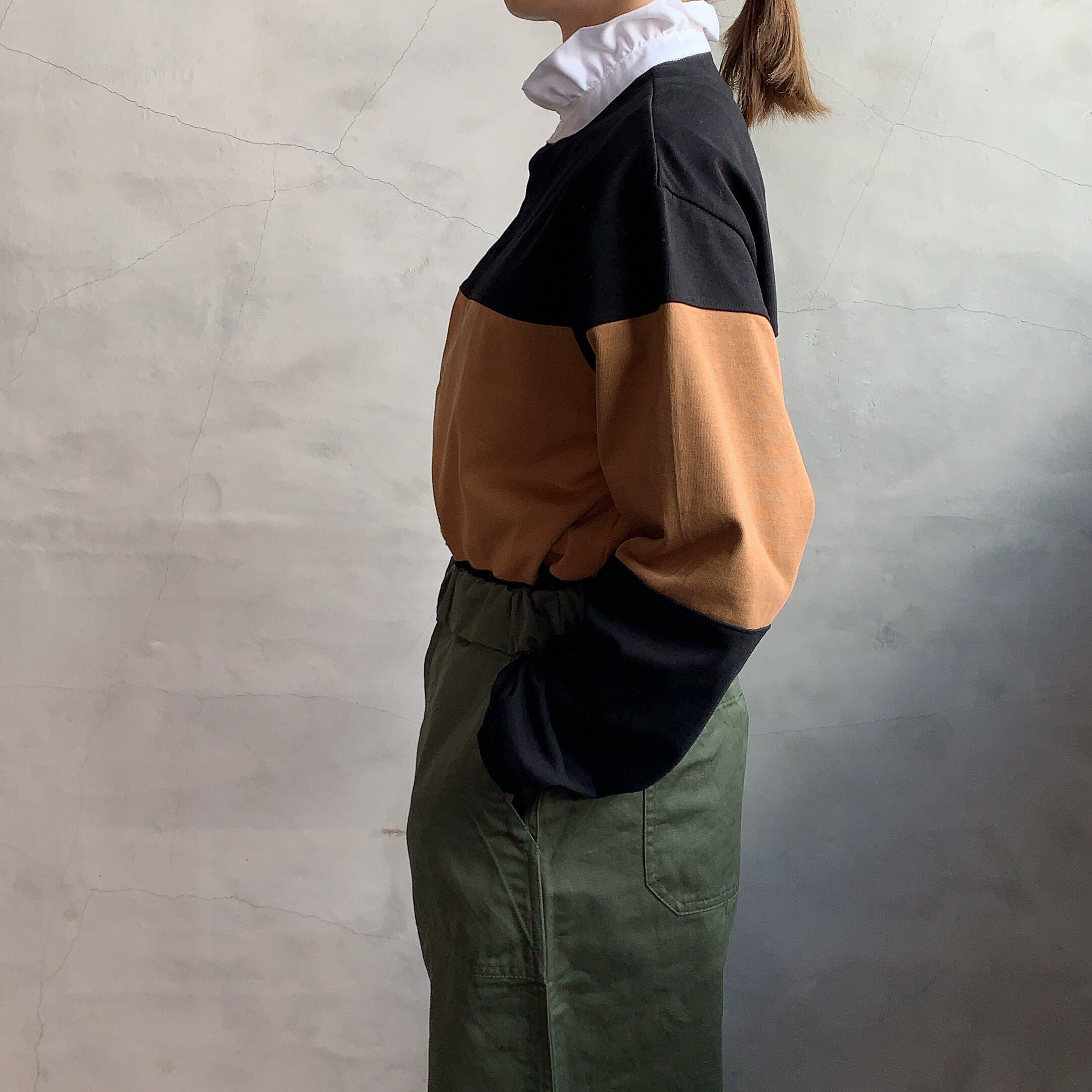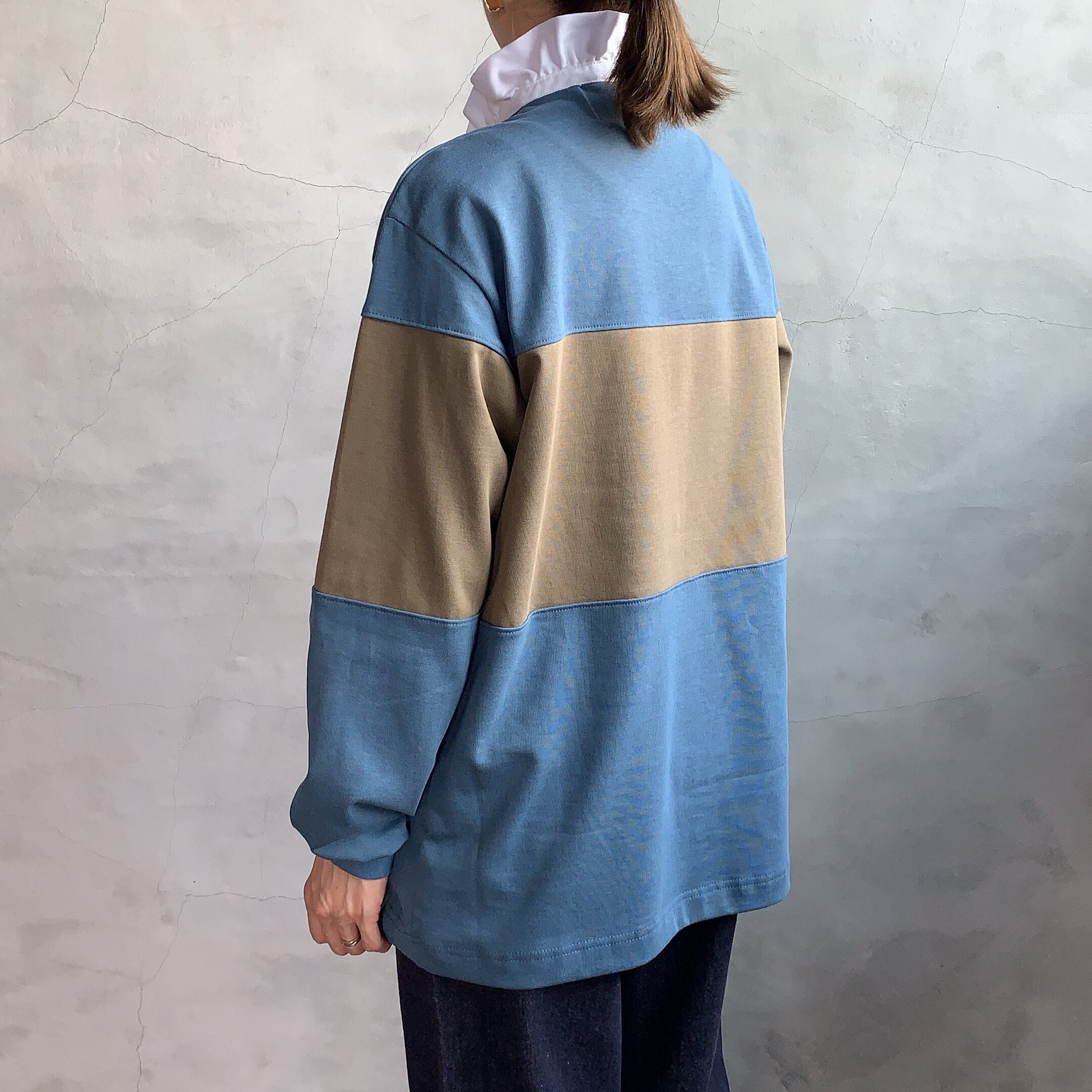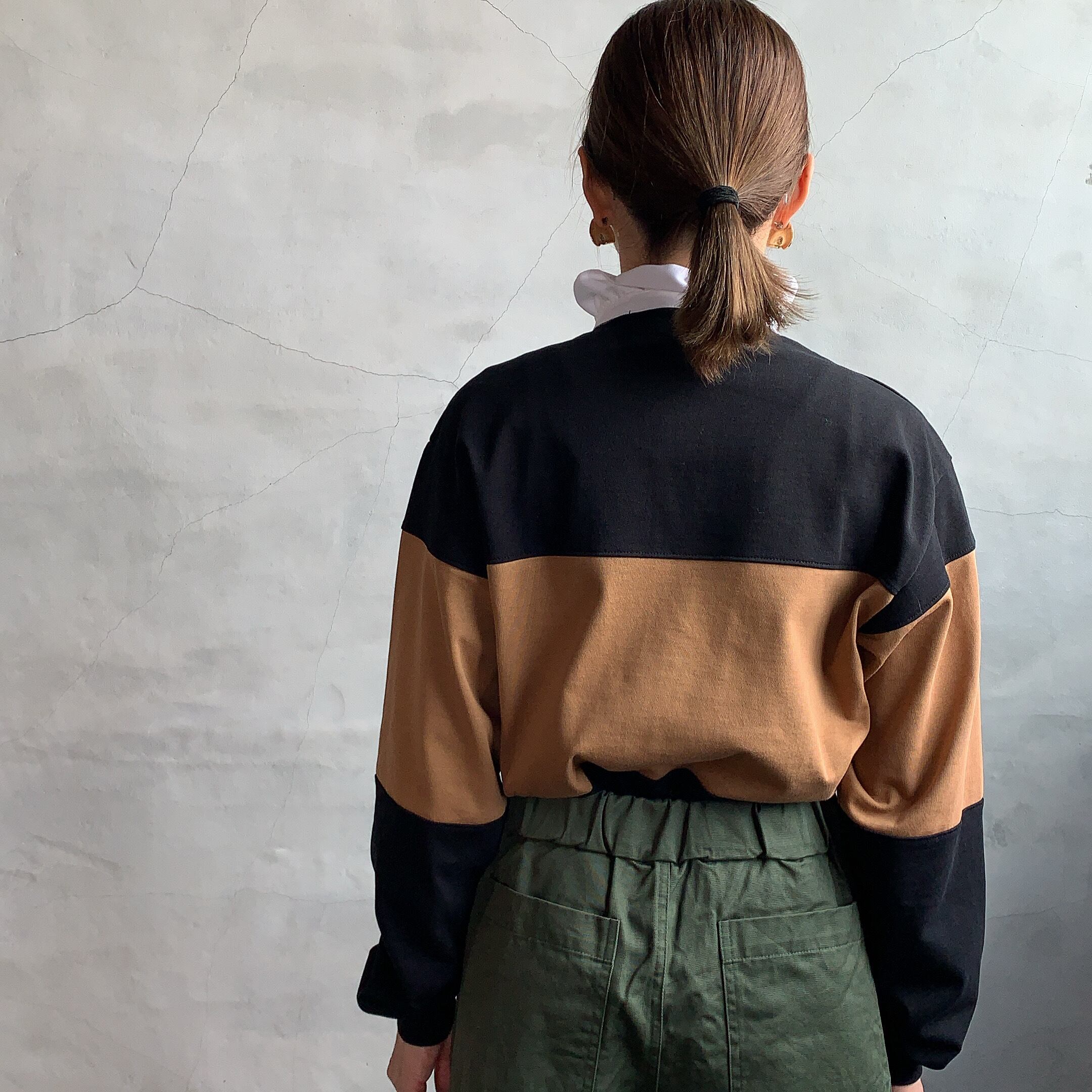 メンズライクな厚手のカットソーにフリルのスタンドカラーを施したラガーシャツです。
