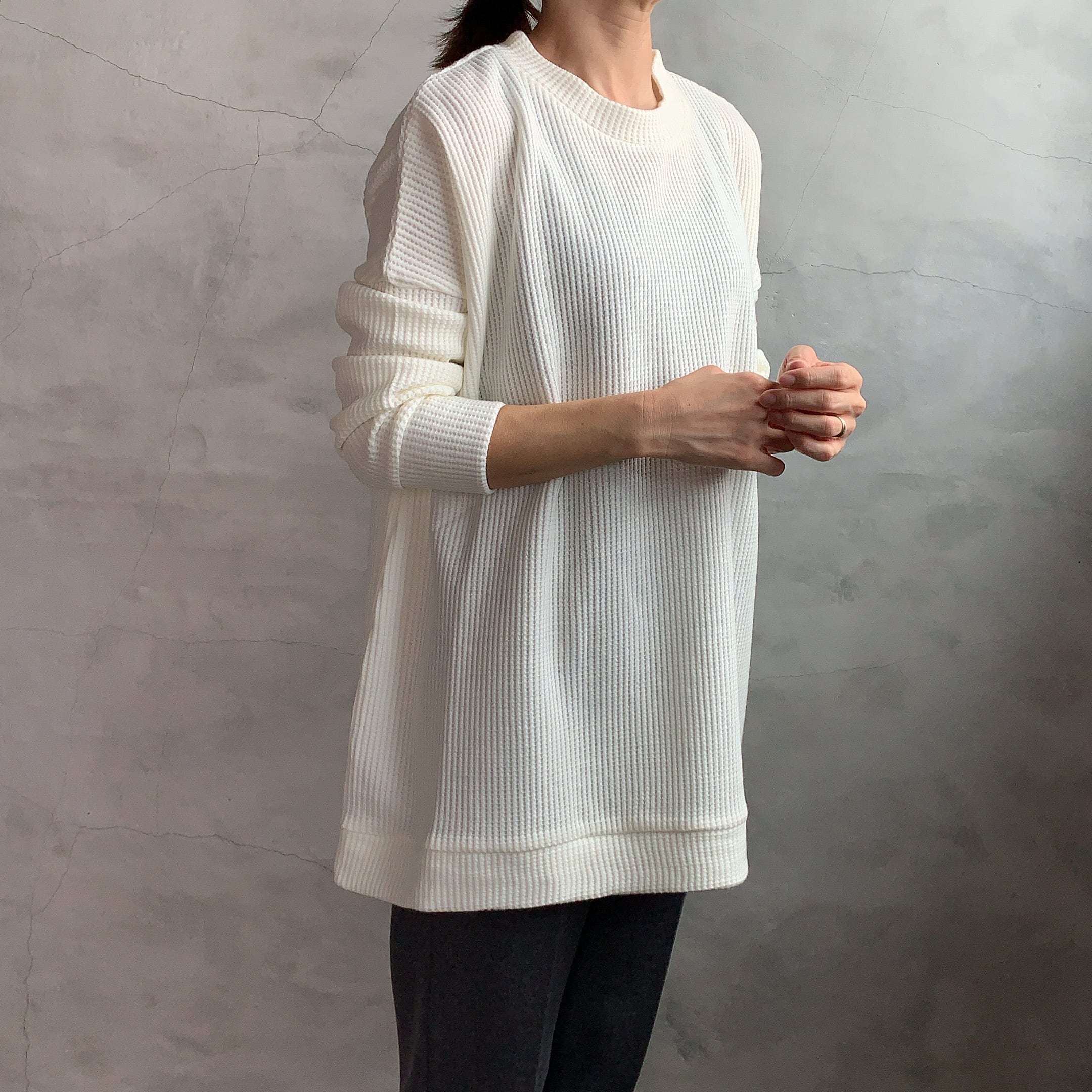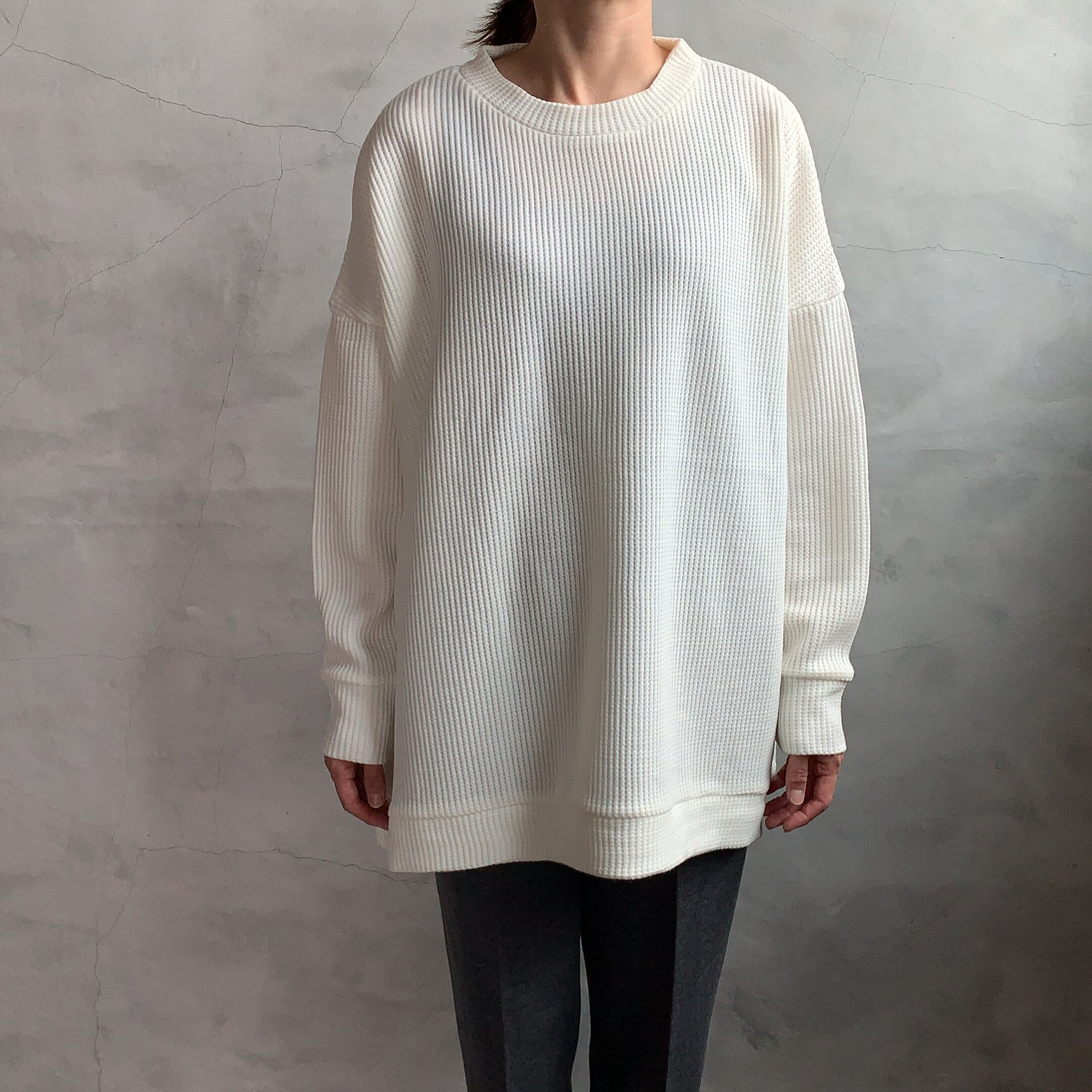 mizuiro ind【ミズイロインド】からワッフルパターンクルーネックプルオーバーのご紹介です。