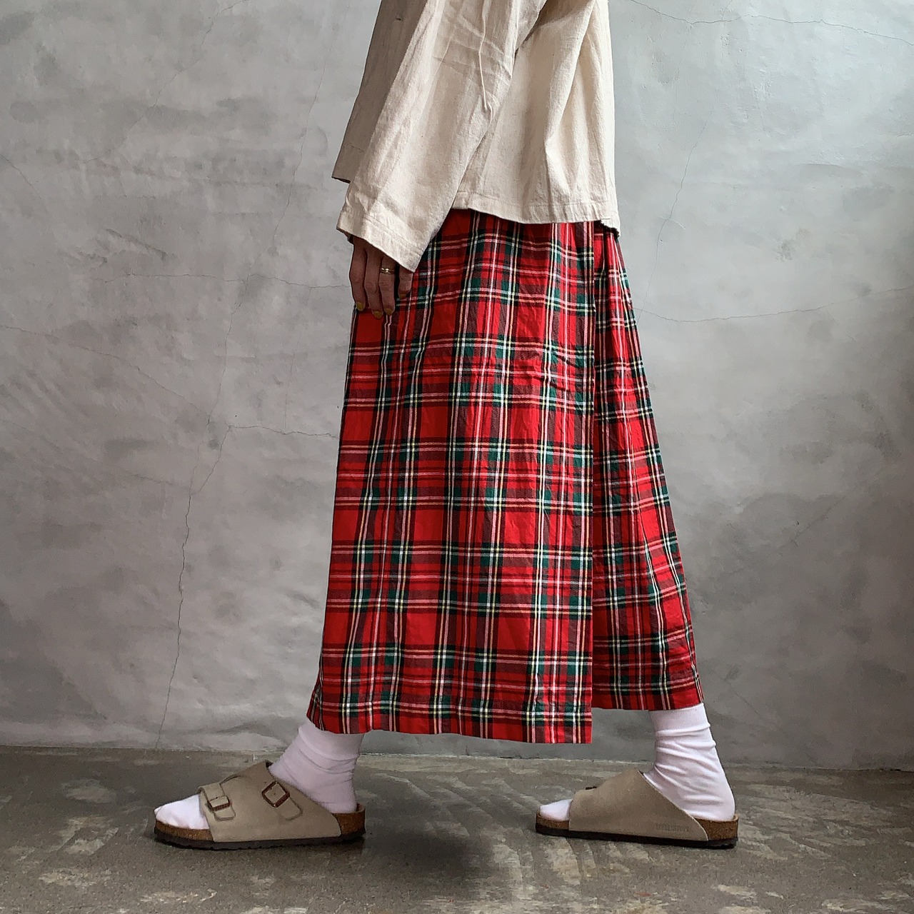 ICHI チェックワイドパンツ