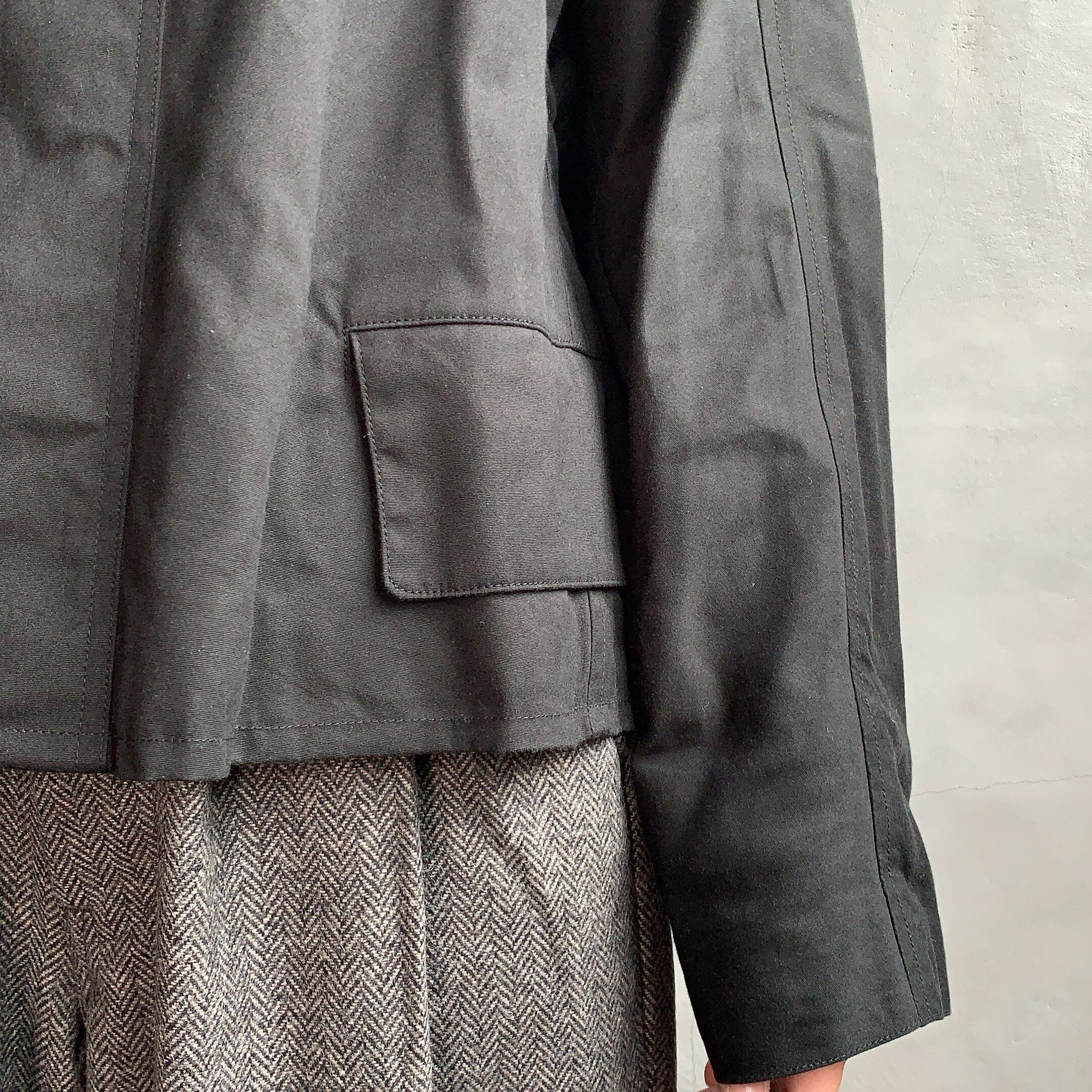 メンズライクなアイテムですが、女性らしい丸襟のデザインやコンパクトで短めな着丈にすることでバランス感が素敵です。