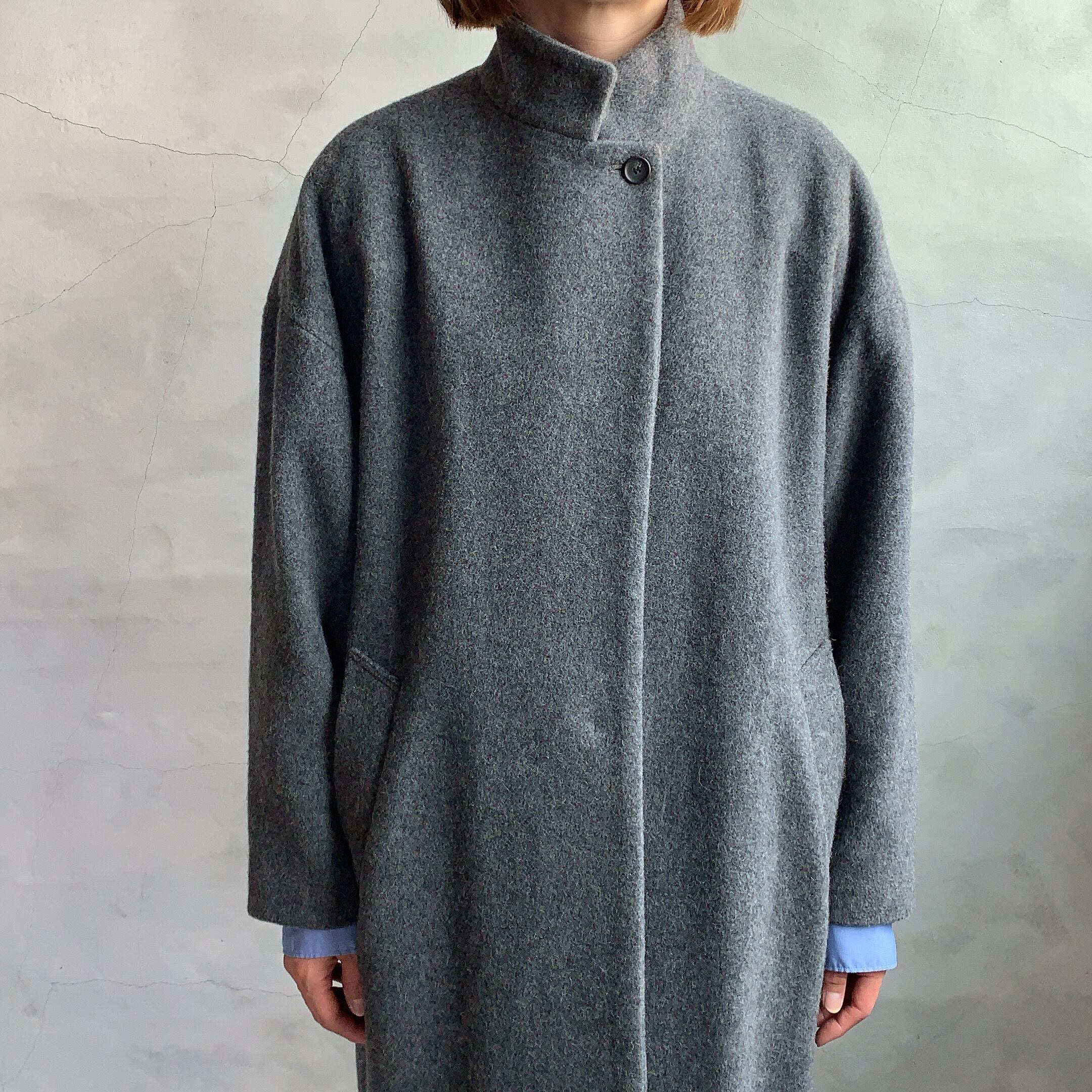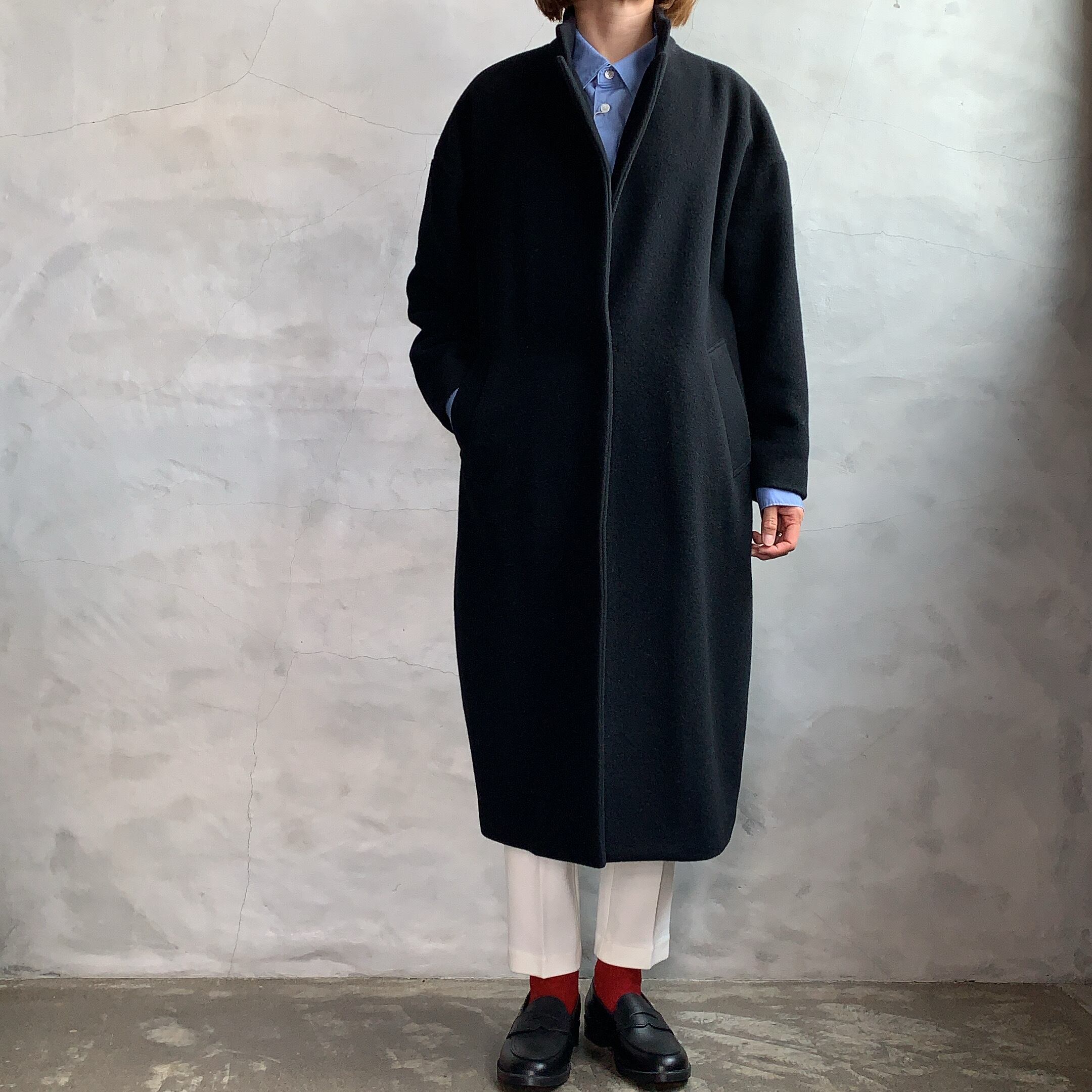 mizuiro indの定番アイテムでもある、人気のスタンドカラーロングコートです。 ウールモッサを使用した非常に軽くて暖かな1枚で、長く愛用できるお勧めのアウターです。首を暖かく覆ってくれるデザインでスッキリとシンプルなデザインが愛されています。カラー展開も豊富で、コーディネートに合わせやすいのもポイント。身長に関係なくバランスよく着て頂けます。裏地あり。