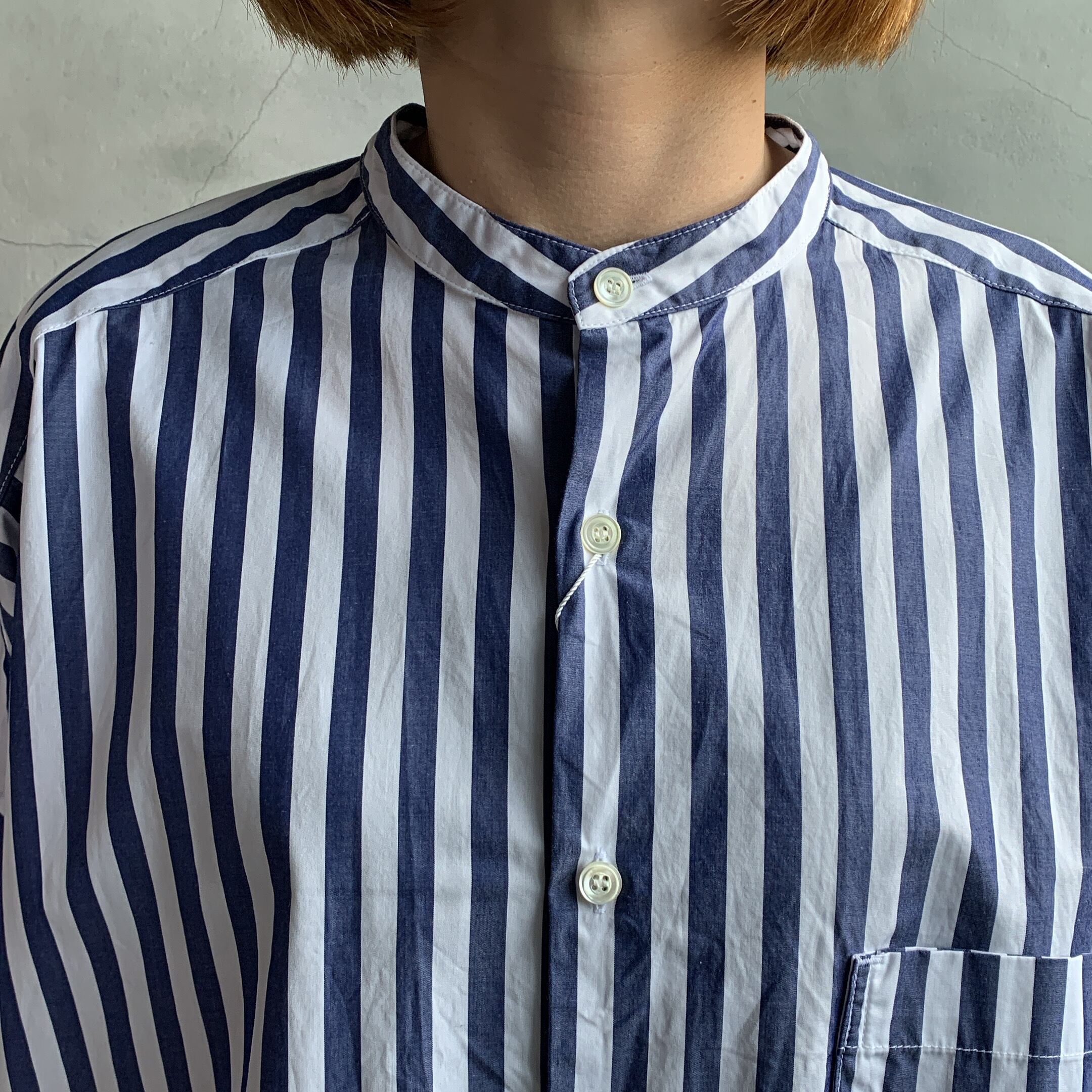 UNIVERSAL TISSU ストライプ バンドカラー スウィングポケットシャツ