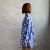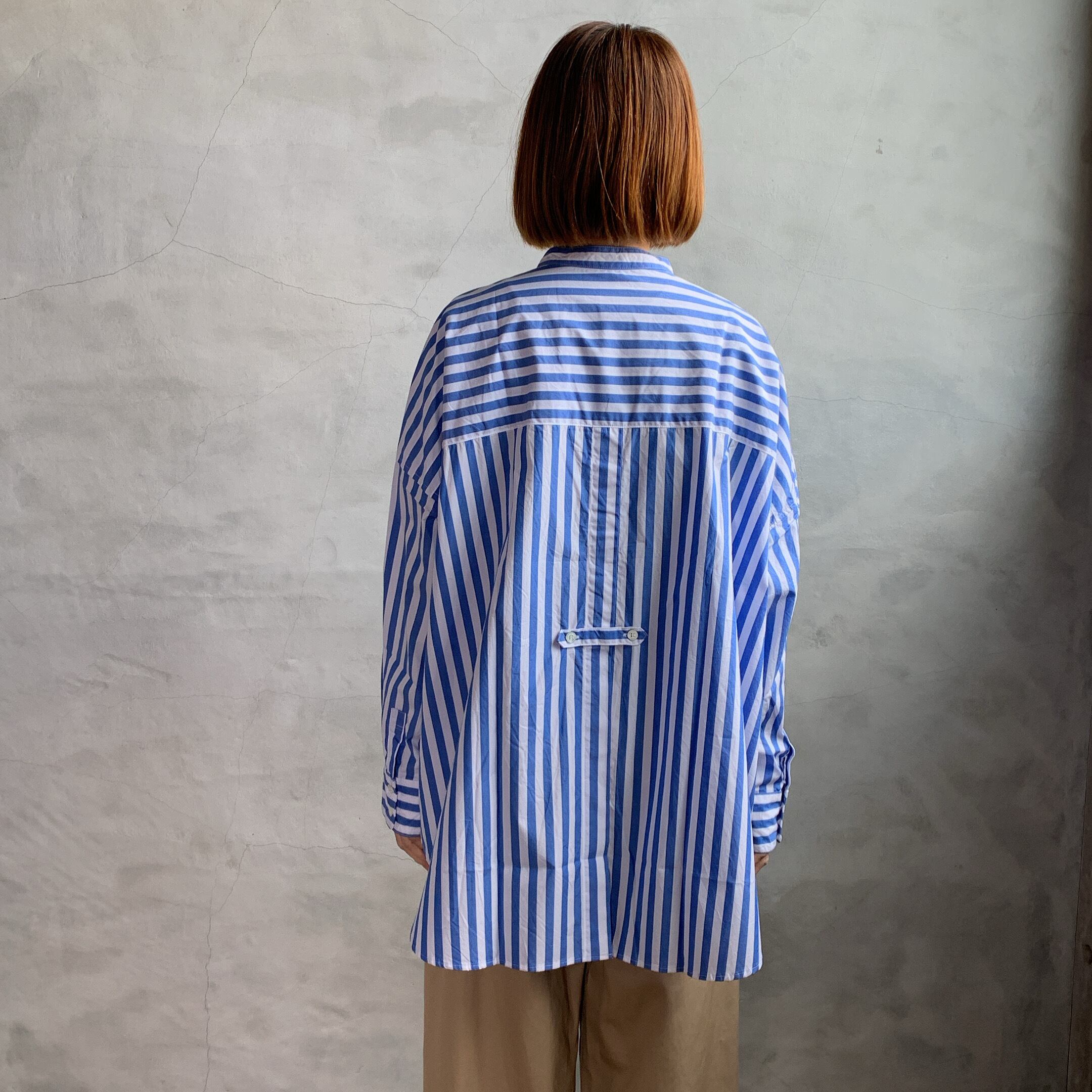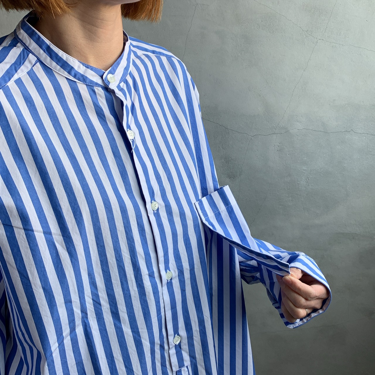 UNIVERSAL TISSU(ユニバーサル ティシュ) ストライプ バンドカラー スウィングポケットシャツのご紹介です。