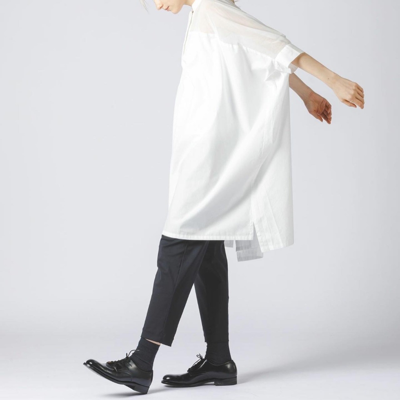 ベースに50ブロードを使用する事で透け感を上品にミックスしたシアーボイルミックススタンドカラーワイドワンピースです。ヨーク部分の透け感がポイントで、普段使いがしやすい新鮮なデザインとして提案できる1枚。人気のある透け感のあるデザインをワンピースに取り入れた大人の魅力をより引き出しました。