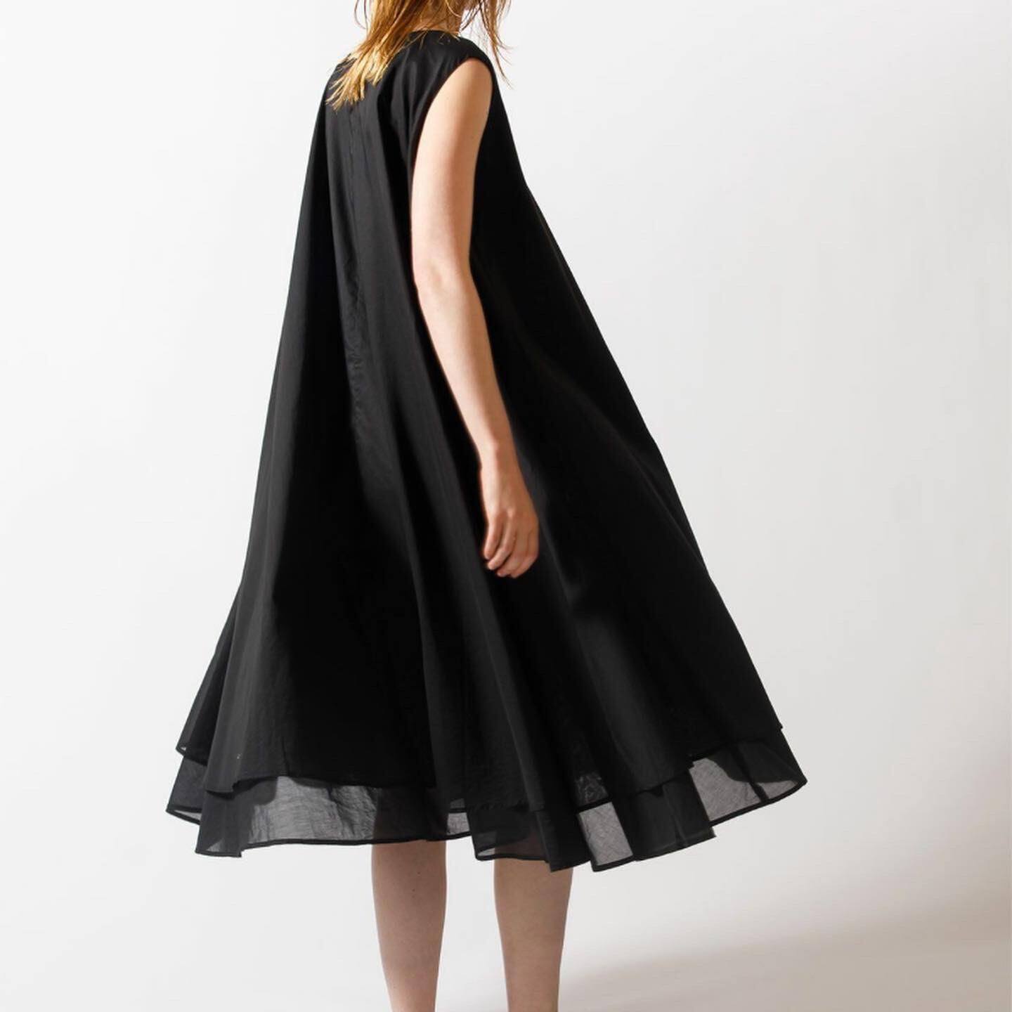 mizuiro ind夏の人気商品クルーネックダブルヘムロングワンピースです。80ローンの2重仕立てを施した透け感がなく1枚で涼しく着用できる魅力的なワンピースで長く愛用されている1枚。たっぷりのフレアー分量ですが、計算されつくしたシルエットで華やかさがありながら、甘さが不思議と抑えらています。暑い日にさらっと着るだけで様になる大人の女性にお勧め。ライトブルー、ライトグレー、ブラウンはスモーキーカラーで落ち着きのあるデザインに仕上がっています。