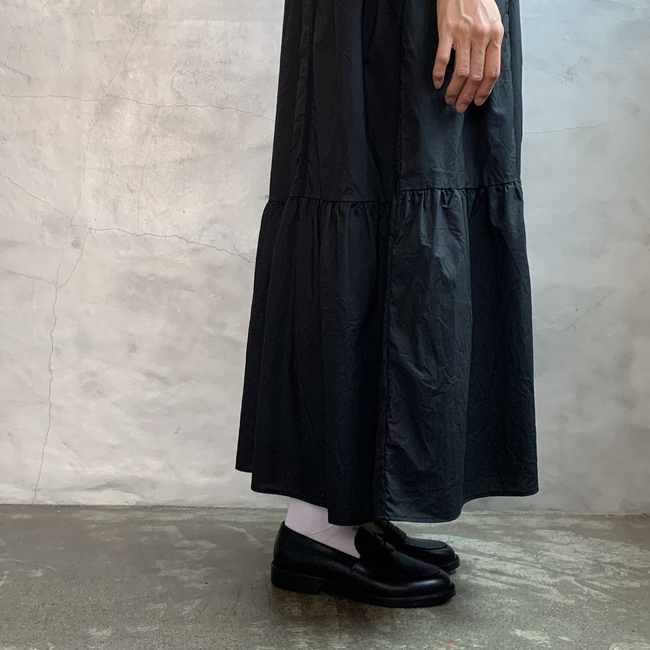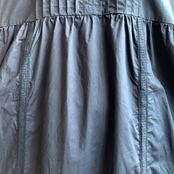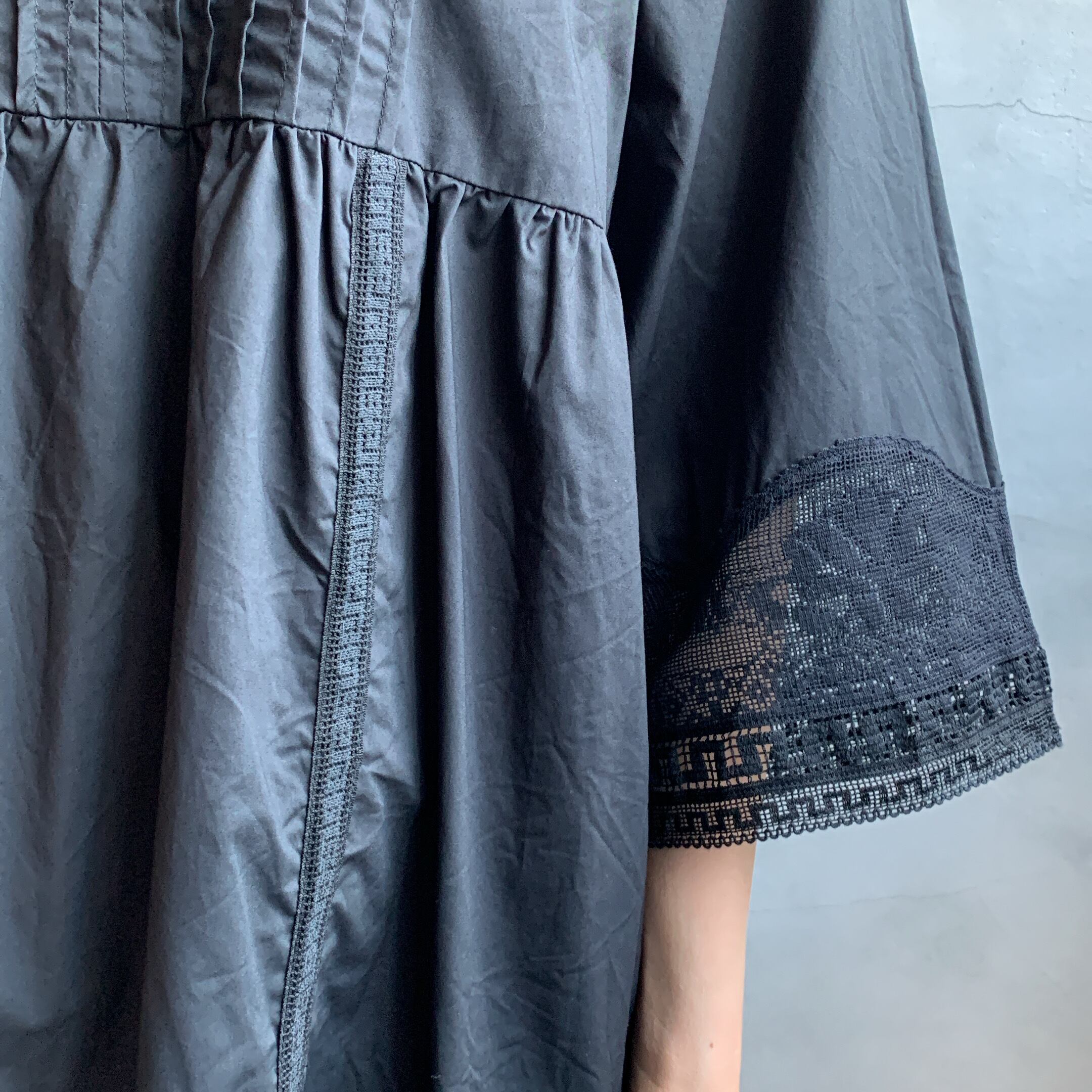 フロントのピンタックやティアードデザイン、たっぷりのレース使いでヴィンテージ感を出しつつ、開放感のあるVネックとフレアスリーブが甘すぎない大人のムードを演出。