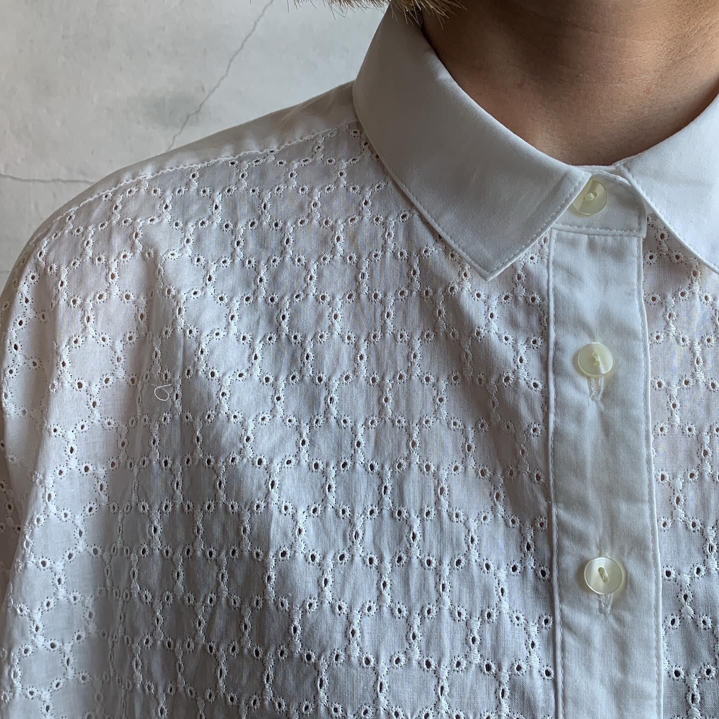 前面に繊細な刺繍をあしらったブラウス。