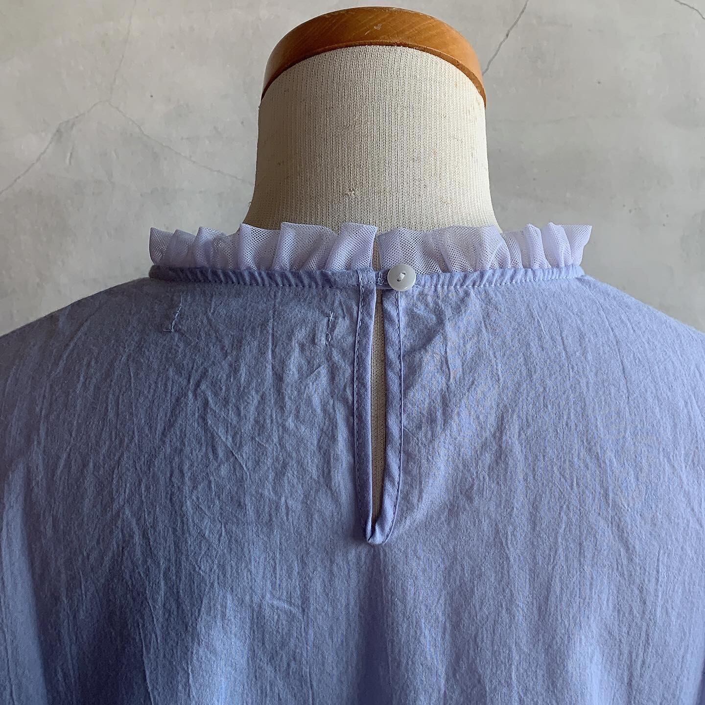 ふんわりとした肌触りと、ネックラインのチュールレースが程よいアクセントになった、かぶりタイプのブラウスです。ふわりとしたバルーンスリーブが上品さを演出。腕も細く見せてくれます。 前後差のついたヘムラインでタックインで変化をつけた着こなしもおススメです。