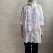 クラシカルな雰囲気たっぷりのフリルが施された程よいボリューム感のある襟元と袖口がポイントのフリルブラウス。