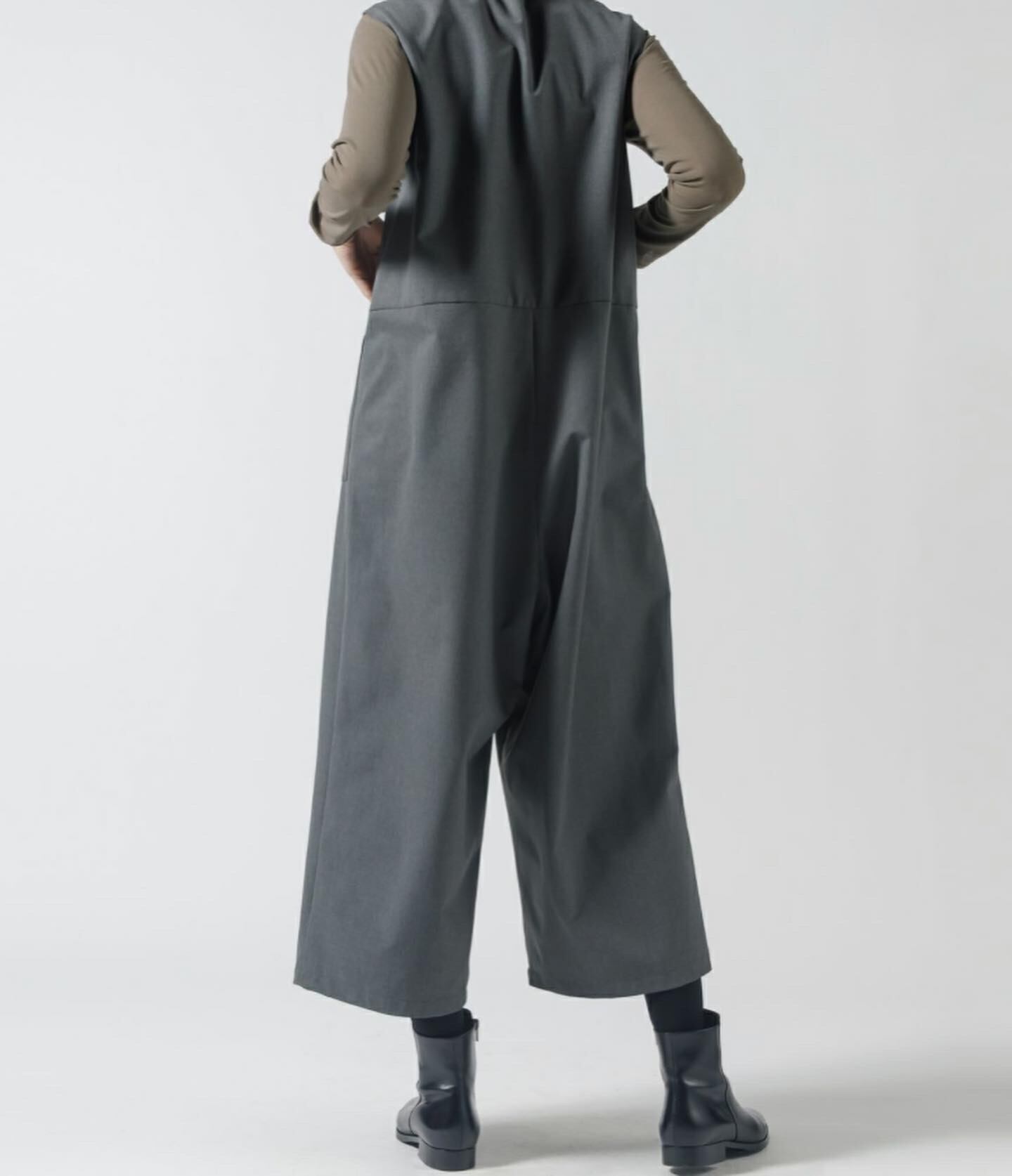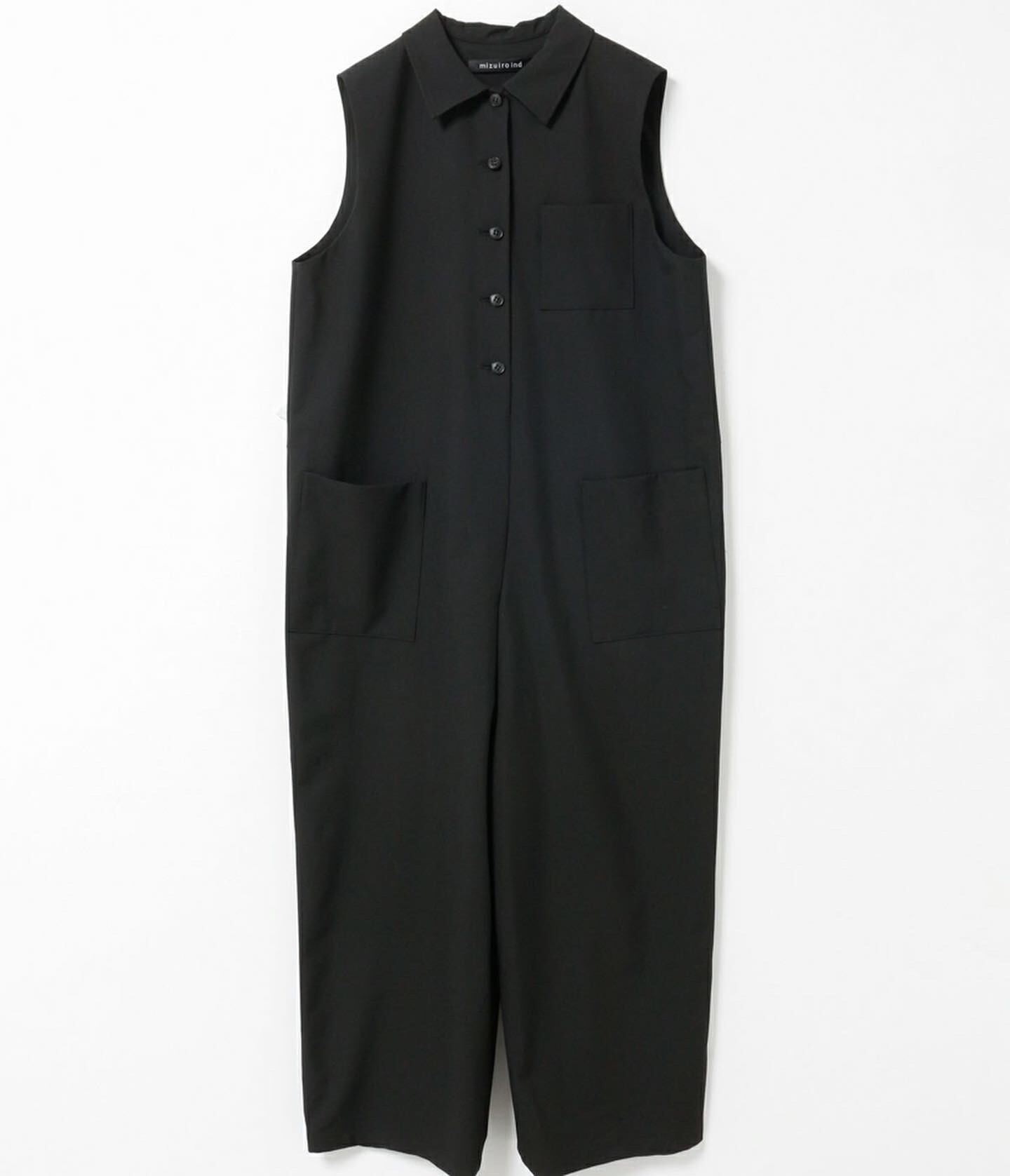 きれい目素材で仕上げた大人のサロペットです。シャツカラーやポケットで遊び感のあるカジュアル×トラッドミックスなデザインが魅力の1枚。子供っぽい感じはなくお洒落な着こなしを演出します。インナーはタートルやシャツなど合わせるアイテムは様々。パンツ幅もゆとりがあるシルエットです。フロントボタンを外して着脱するデザインになっています。