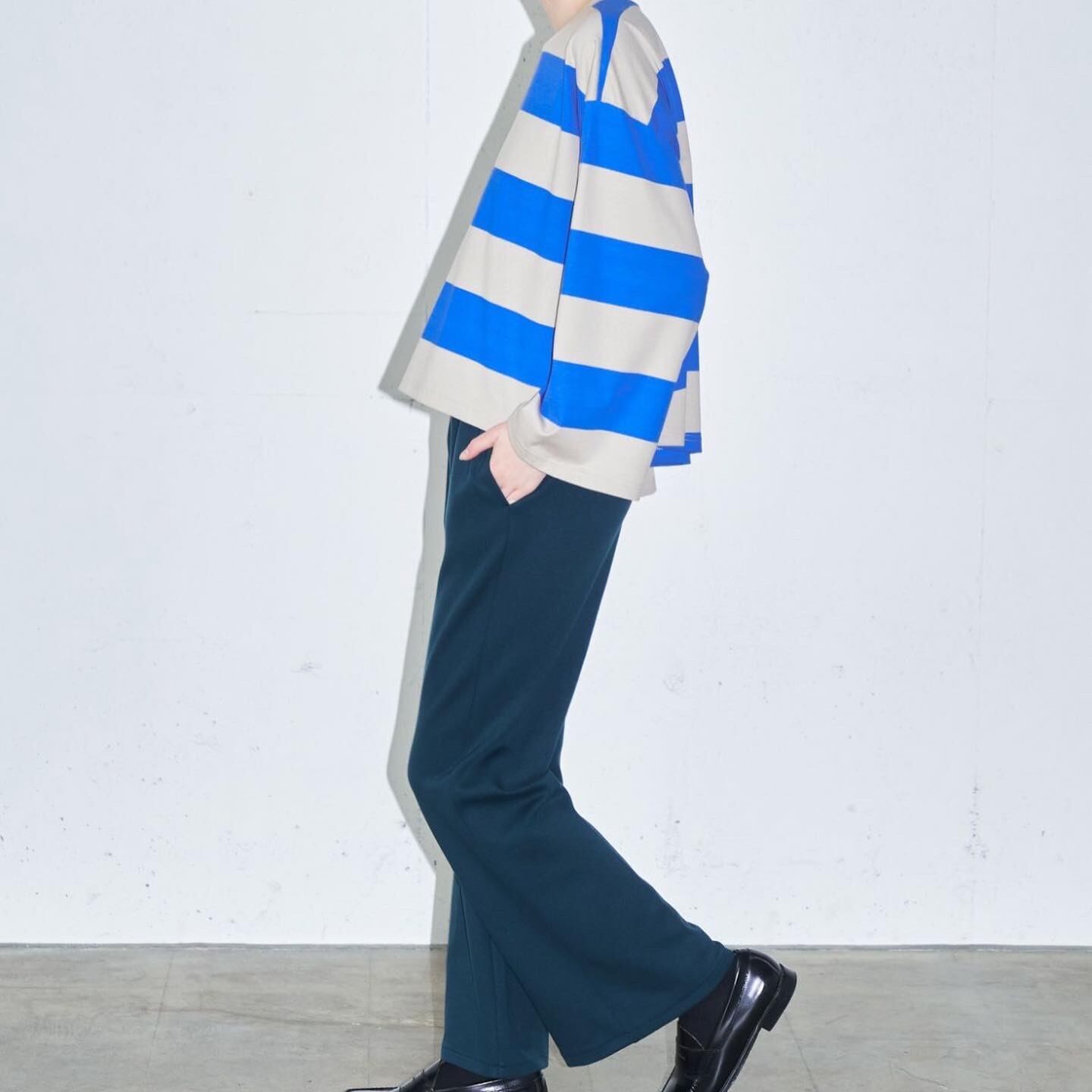 MIDIUMISOLID人気の太ボーダーシリーズが秋冬アイテムで登場。ボーダーワイドプルオーバーです。配色の異なる3色の色合いで大人のカジュアルを表現します。たっぷりとしたサイズ感ですがヒップ上のスッキリとした丈感に仕上げました。袖は腕が通しやすいワイド幅のデザイン。巾のあるボーダーの配色はインパクトがあり印象に残る着こなしを演出します。ボトムはロング丈やワイド感のあるデザインもバランスよくコーディネートができます。ベーシックアイテムなので長く愛用できるお勧めのボーダーシリーズです。