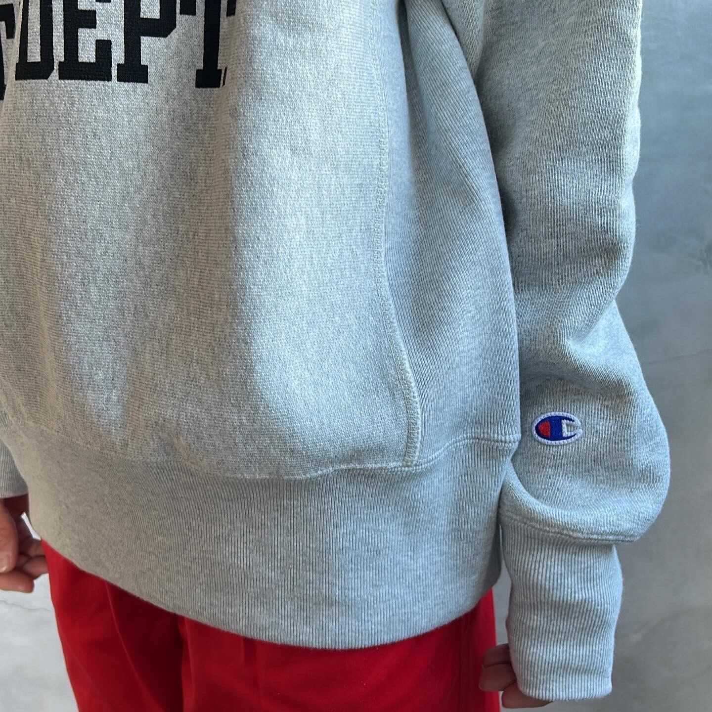 Champion(チャンピオン)のスウェットシャツは、「ザ キング オブ スウェットシャツ」と評されるほど、世界中の多くのファンに愛されてきました。チャンピオンを代表する製法の「REVERSE WEAVE® (リバースウィーブ®)」。洗うほどにタフになり、着こむほどに独特の風合いや味が出る裏起毛素材を使用した「REVERSE WEAVE® 11.5oz. Terry Fleece(リバースウィーブ® 11.5オンス テリーフリース)」シリーズのフーデッドスウェットシャツです。本来は縦方向に使われる生地を横方向に使用する「REVERSE WEAVE®」製法によって縦の生地の縮みを防ぐと同時に、両脇に「EXPANSION GUSSET(エクスパンションガゼット)」を付けることで横の縮みへの影響を少なくし、動きやすさに配慮しています。オーセンティックなシルエットで、チャンピオンと親和性の高いカレッジ風のグラフィックがポイント。製品洗い加工によって、購入時からグラフィック部分に生地と馴染んだ風合いを持たせています。ネームタグには1970年代モデルの「青単タグ」(青単色タグ)を採用。