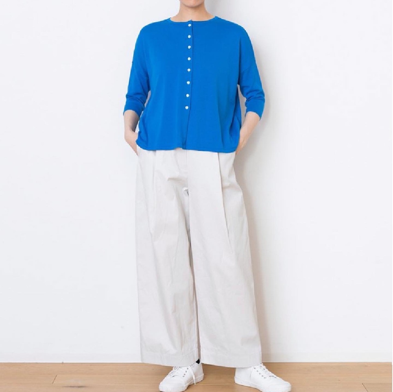 なめらかでシルクのような光沢のあるコットンを使用。 風の冷たい春先や秋の始まり、気温が下がる梅雨時期、夏場はエアコンの風が気になる時など1年通して着まわせるカーディガンです。