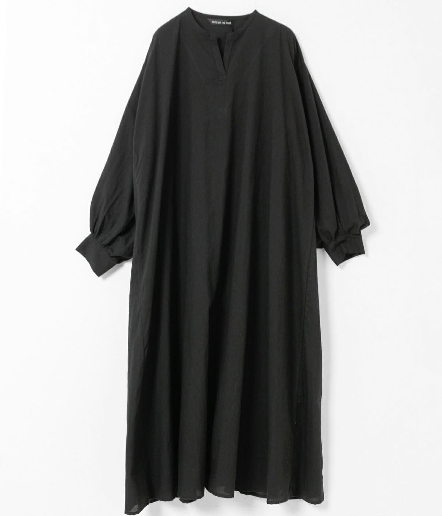 mizuiro ind ヘンリーネックフレアロングワイドワンピース