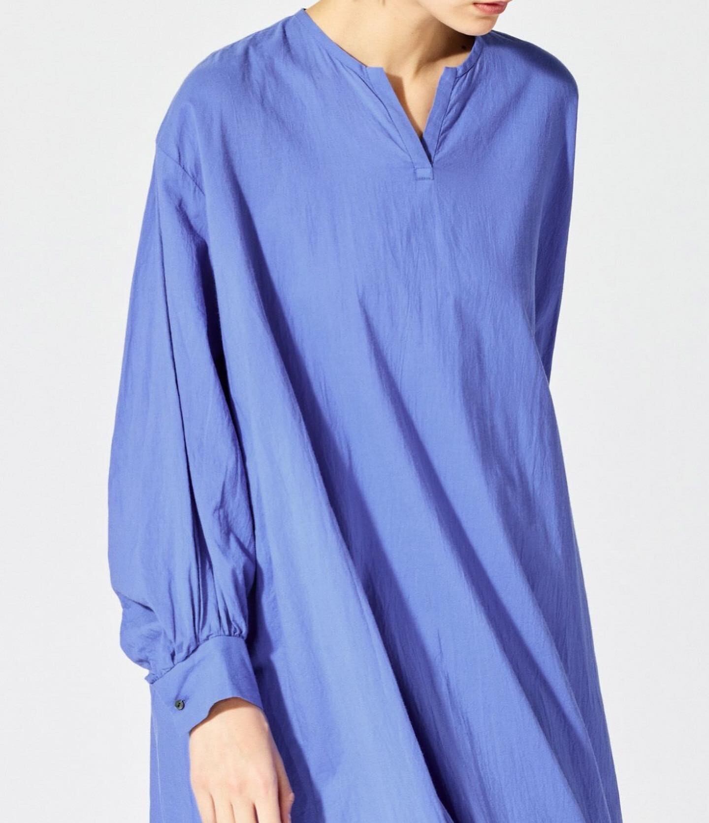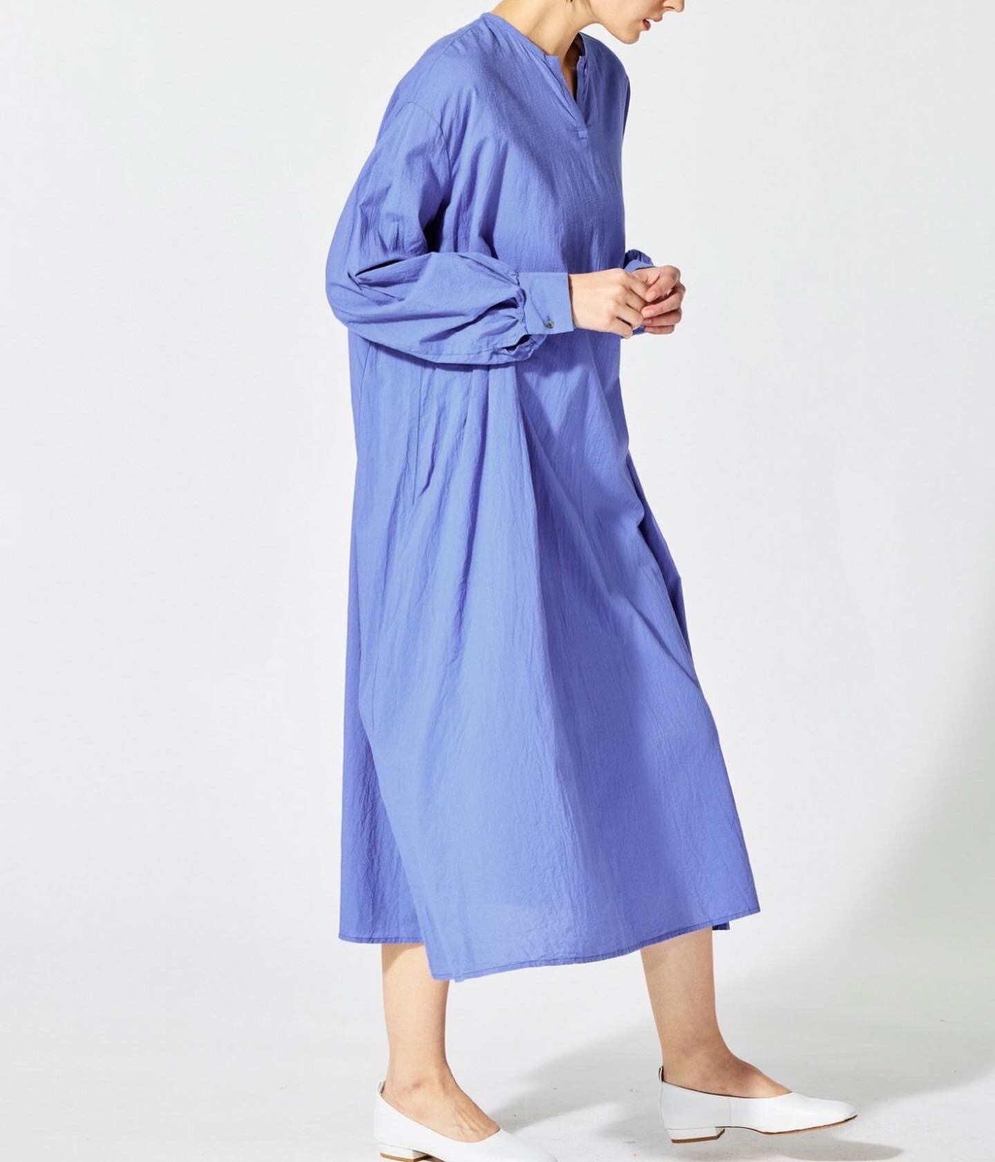 mizuiro ind人気のワンピースでもあるヘンリーネックフレアロングワイドワンピースです。肘にボリュームが出るように袖をワイドなデザインに仕上げました。首元はヘンリーネックのスリットを施したすっきり感を表現。ロング丈の上品なフレアラインが女性らしい雰囲気を印象付けます。ブルーを差し色に落ち着きのあるベーシックカラーで展開したおすすめのワンピースです。