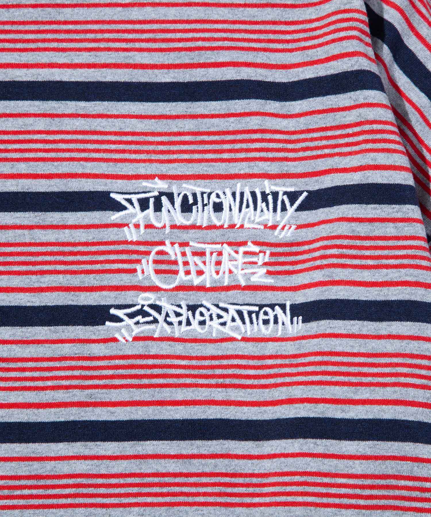 左胸の刺繍は「FUNCTIONALITY CULTURE EXPLORATION」で、CASPERによるグラフィックデザイン。