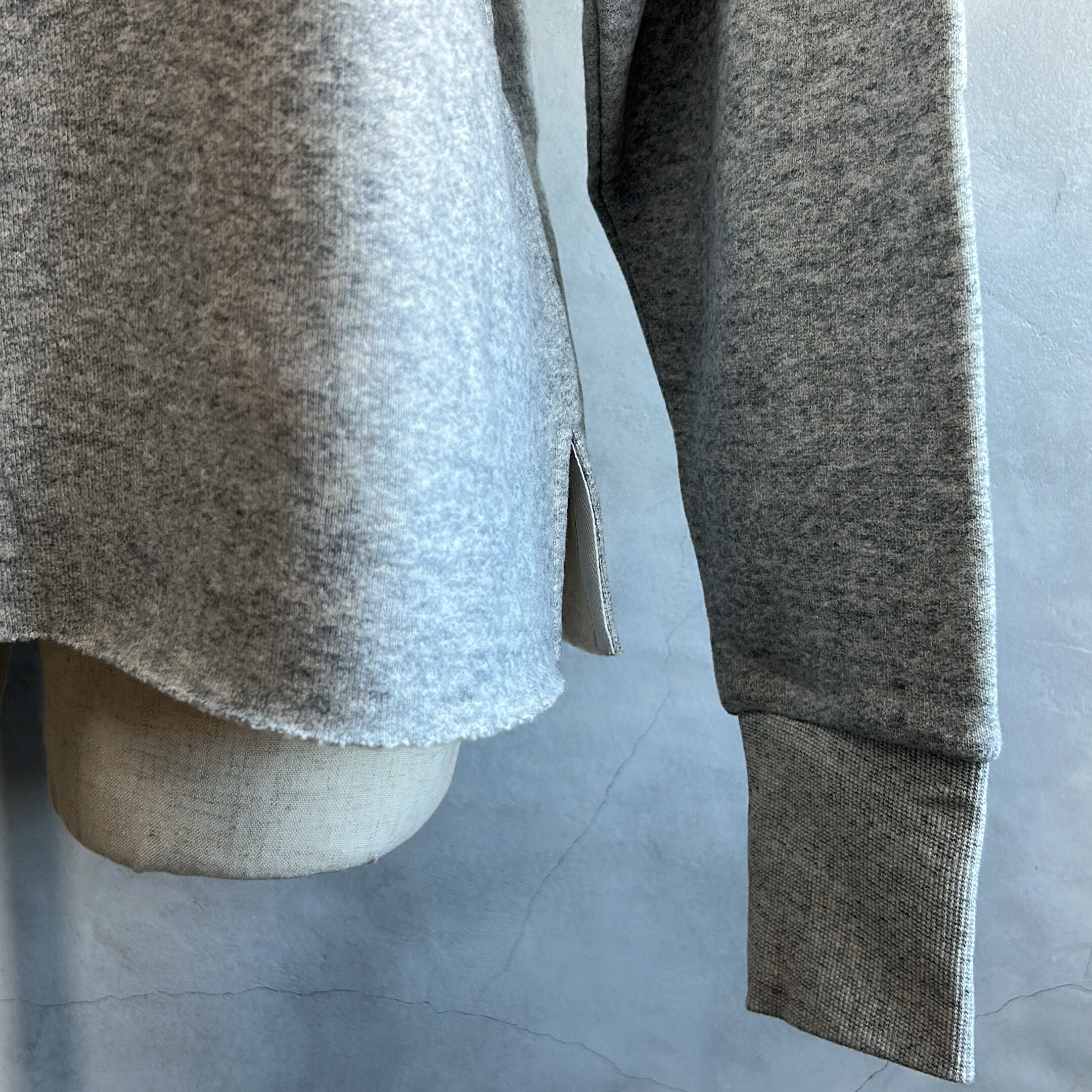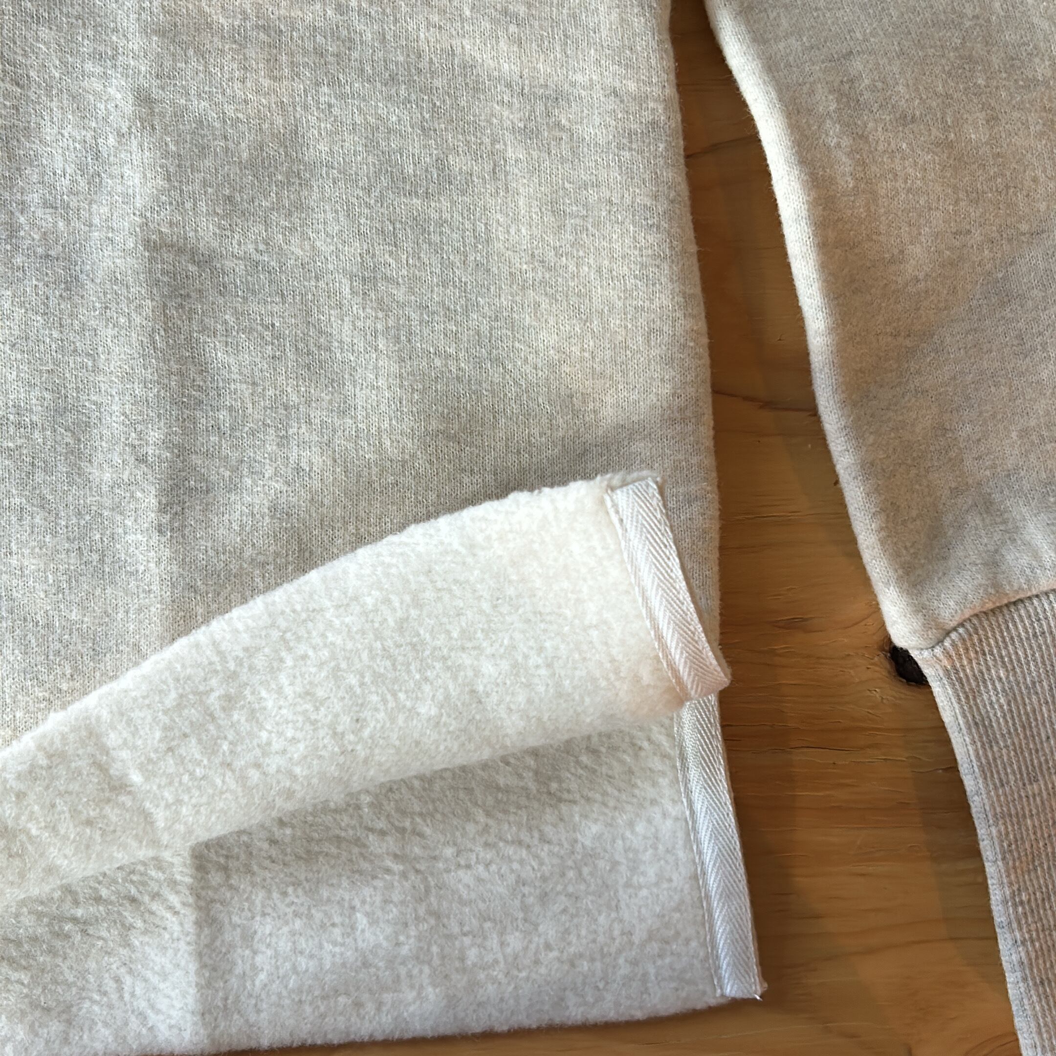 身幅もゆっくりとしていて着心地も良く、裏起毛がふんわり柔らかく暖かい、軽いスウェットとなっています。