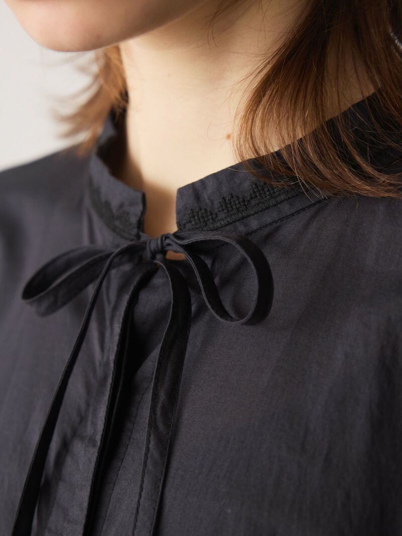 60ローンに繊細な刺繍を施したクラフト感のあるボリュームたっぷりで軽やかな刺繍フレアワンピース。