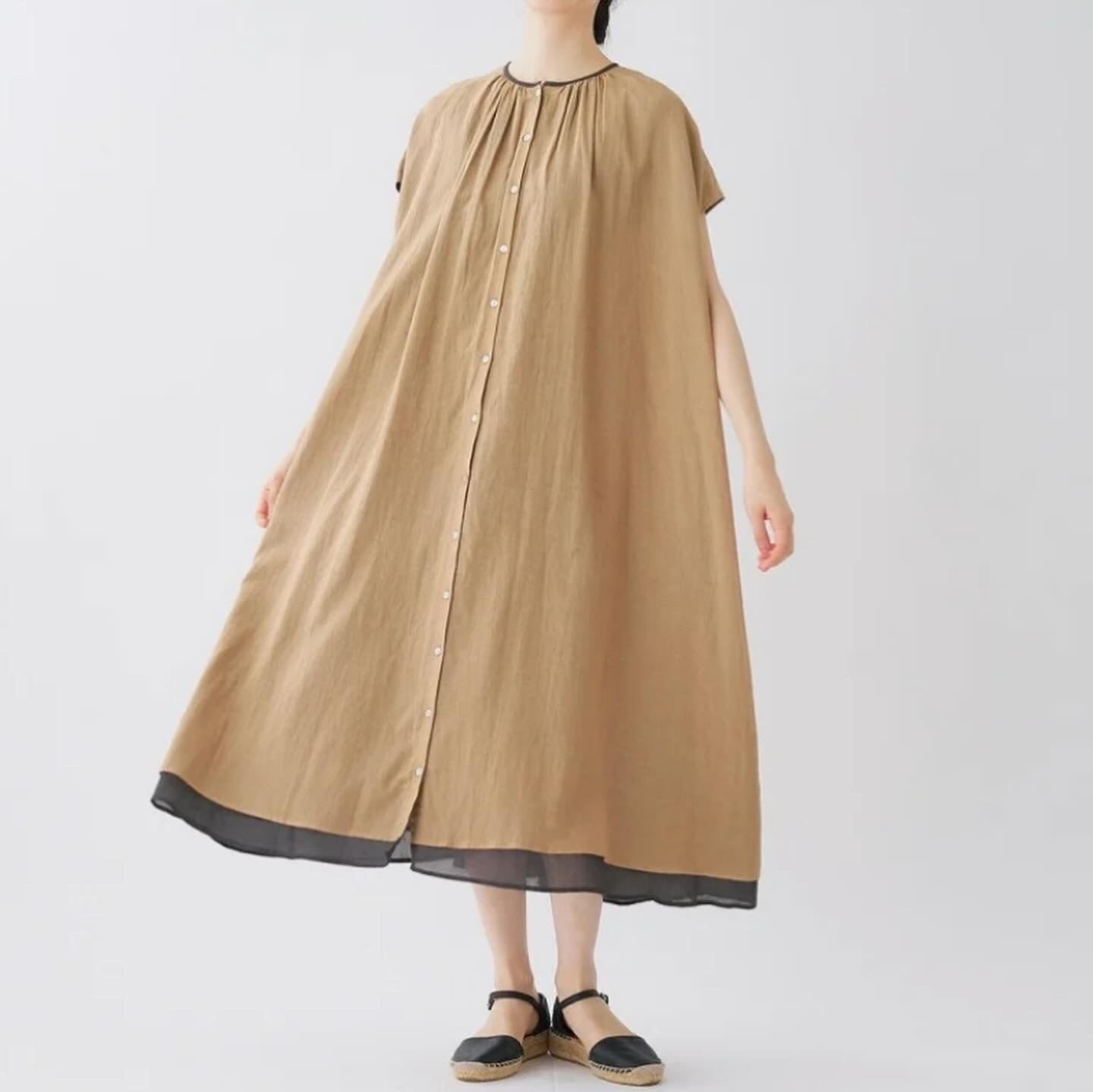 透明感のある薄手のコットンレーヨン生地を2枚仕立てにしたワンピース。