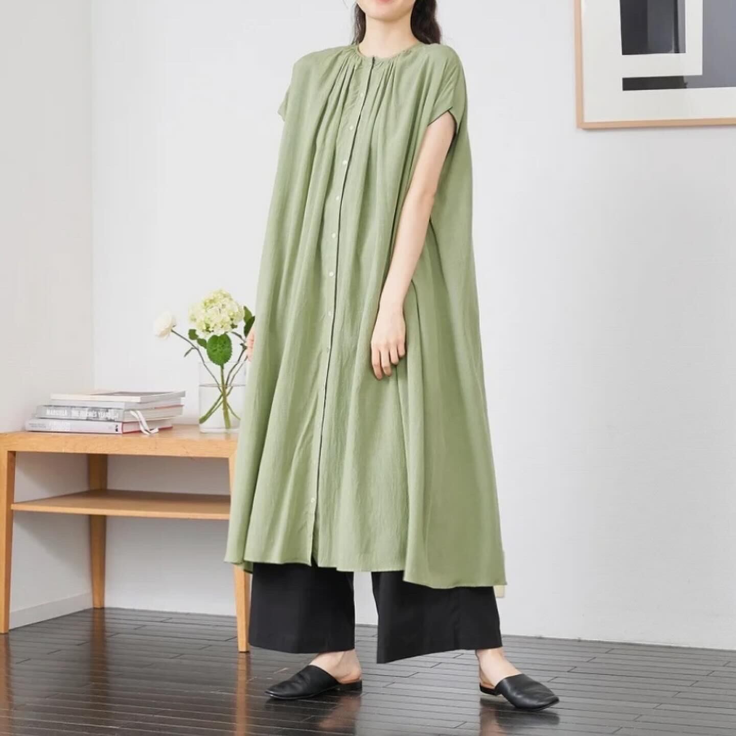 ゆったりとリラックスして着られるサイズ感ですらりときれいなシルエット。 気になる身体のラインをさりげなくカバーしてくれます。