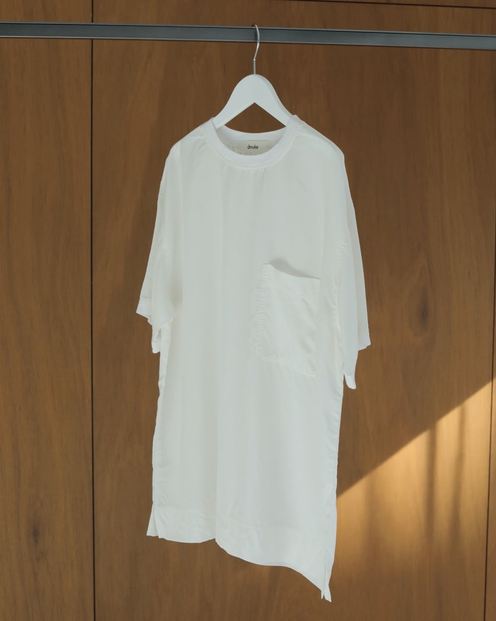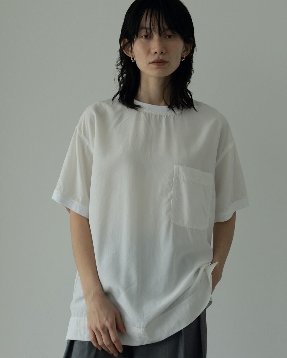 シャツより綺麗め見えする布帛のプルオーバー。オーバーサイズなのでワイドパンツ,ロングスカートによく合います。