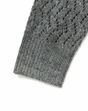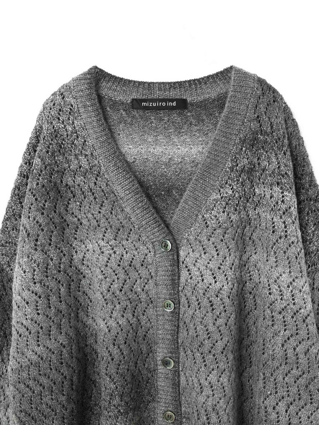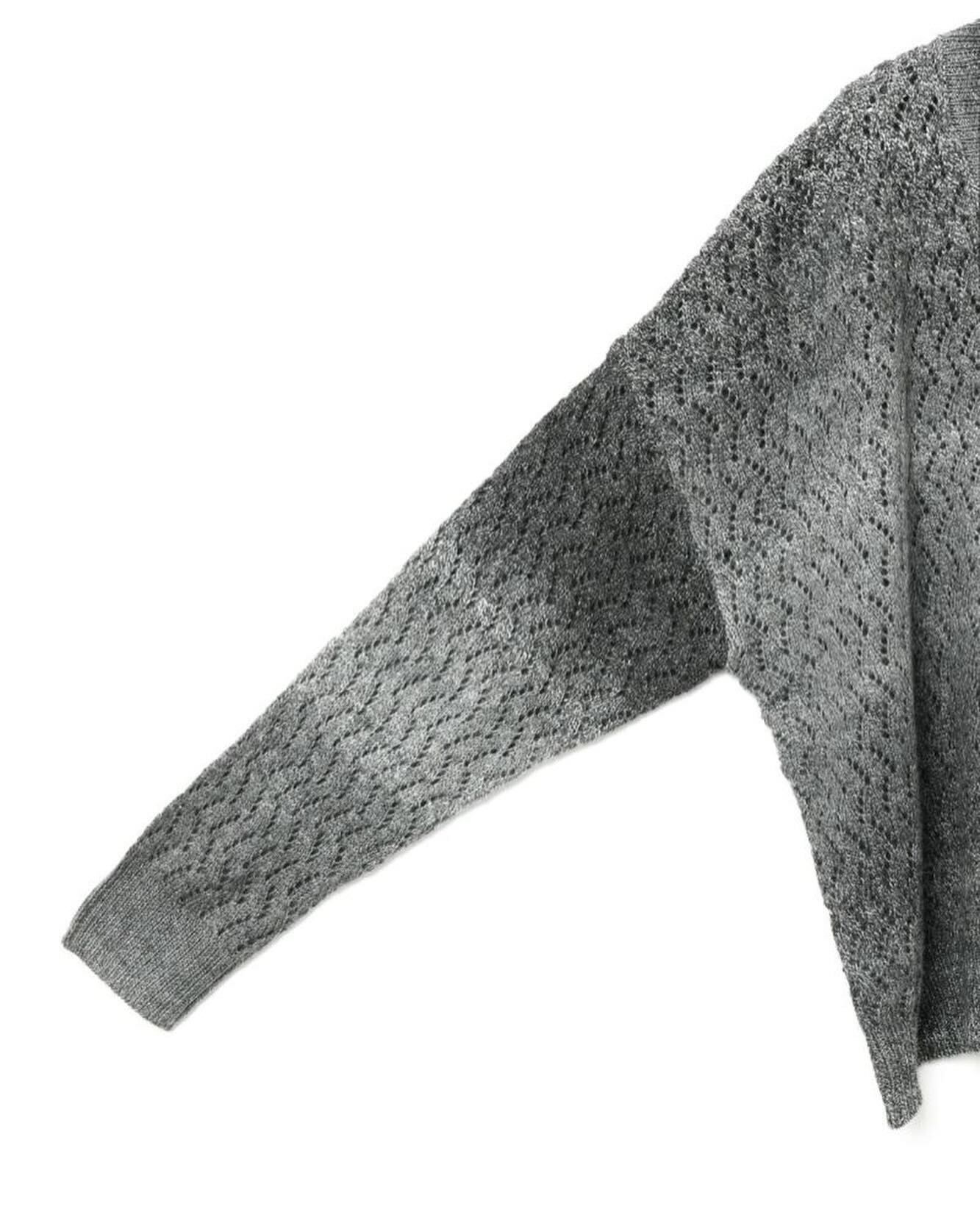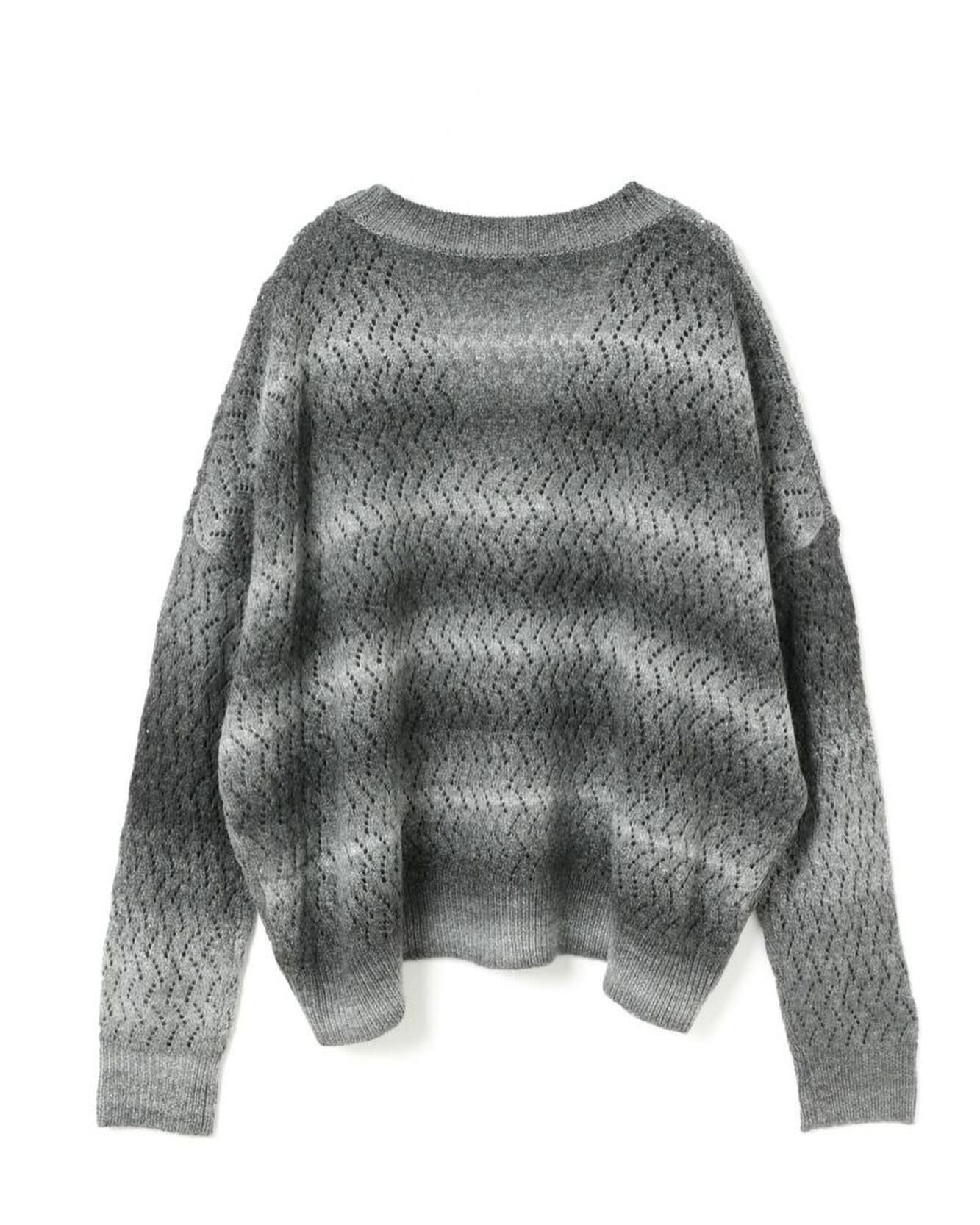 ヴィンテージライクなグラデーションが印象的な透かし編みのVネックカーディガンニット。ゆったりとしたワイドなシルエッとドロップショルダーでリラックス感のあるスタイル。ほどよい丈感でボトムス問わず合わせやすくコーディネートで活躍します。ウール混のあたたかなニット素材。ほどよい厚みでちくちくとしない肌触りの良さもポイント。グラデーションの出方は個体差がございます。